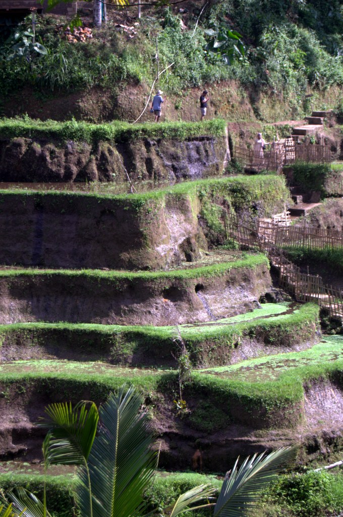 Abrimos la mañana con un paseo (para arriba y para abajo…) por los arrozales de Tegalalang. Aunque parezca mentira, hay que pagar para entrar. Sí, sí… Siguen trabajando las tierras pero es un rincón terriblemente turístico. La entrada es menos de un euro, al menos. Como son primeras horas del día, al llegar hay pocos turistas, pero cuando nos vamos ya se está llenando.