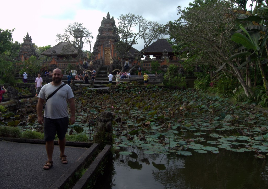 Un martes 23 de julio nos recoge nuestro chófer del día, Putu, para llevarnos al templo Tanah Lote, al templo Tama Ayun, al templo Pura Gunung y, finalmente, a nuestro nuevo hotel en Ubud. Todo por 600 000 rupias, unos 40 €. Se nos ocurrió cuando le conocimos, llevándonos del aeropuerto al hotel, ya que nos propuso hacernos un tour de un día. Este tipo de tratos con conductores puede ser una muy buena opción cuando necesitas desplazarte por Indonesia, sobre todo en distancias lejanas o difíciles, o cuando no vas a retornar al punto de origen, por no poder devolver un vehículo de alquiler. Y realmente sigue siendo una opción barata.