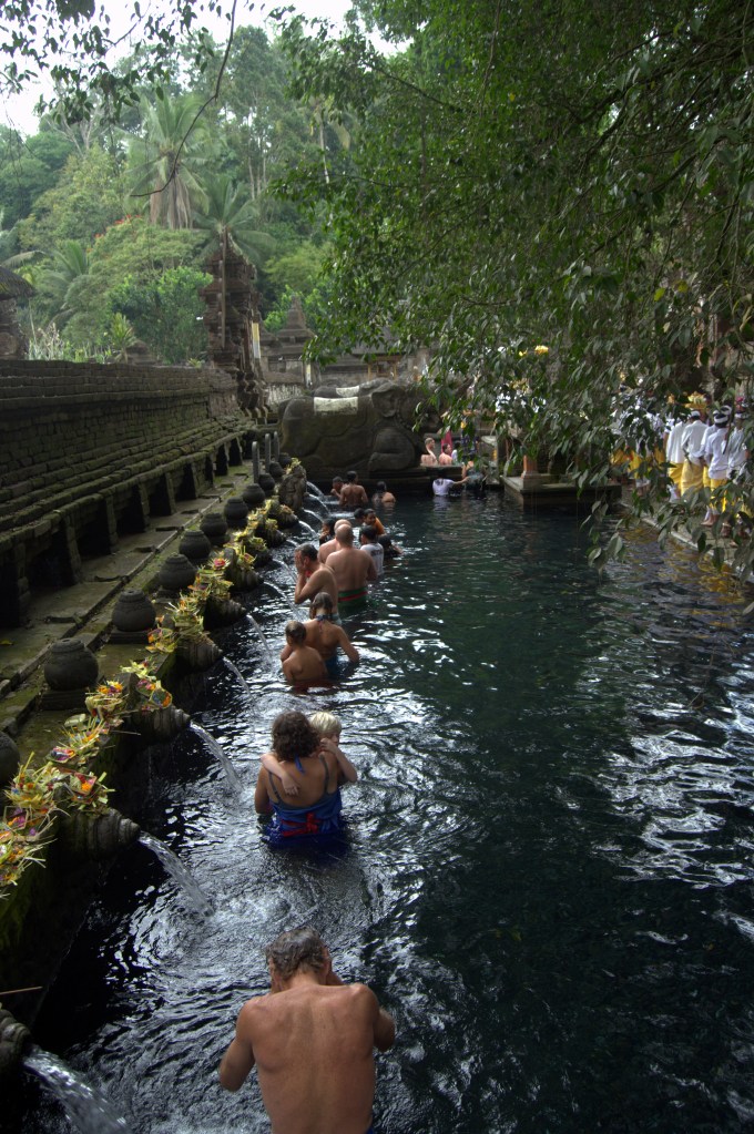 Tras el rezo, la bendición y la deposición de las ofrendas, casi todos quieren pasar también a darse un remojón de agua purificadora por la fuente. Se forma una fila tan larga que nosotros nos abstenemos de hacerlo.