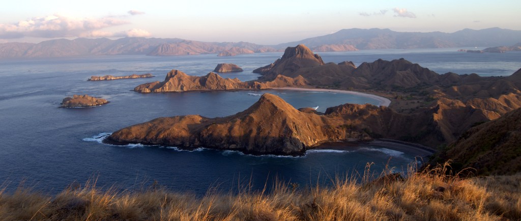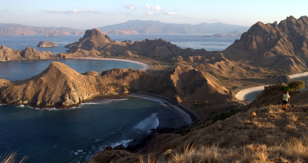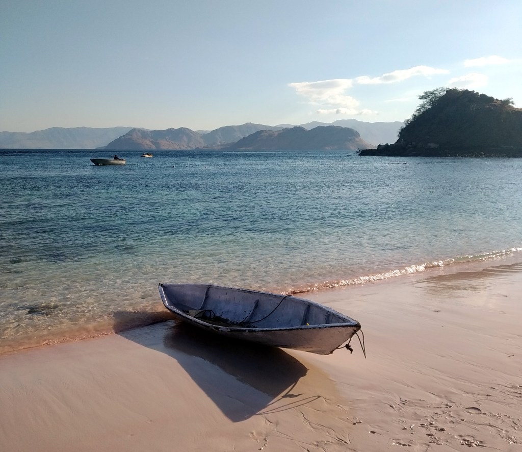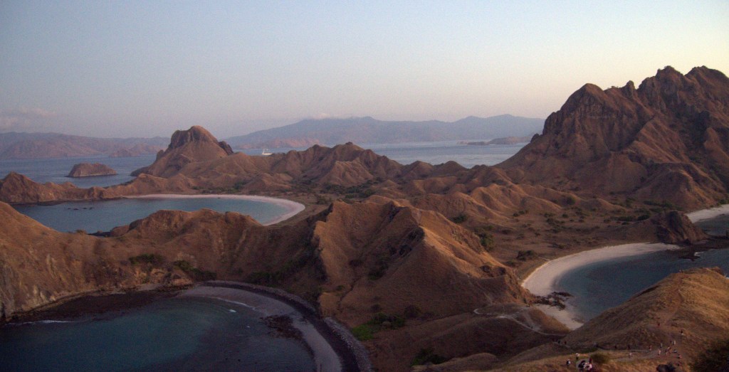 El último y cuarto día de viaje, nos despiertan a las 5:00 de la mañana. Estamos fondeados en una bahía de Padar Island, donde hemos pasado noche con otras 30 embarcaciones. Las primeras luces del alba se perfilan en el horizonte sobre el mar mientras nuestro pequeño bote nos acerca a la orilla. Mientras subimos la colina, todavía está oscuro y abajo las luces de los barcos contrastan con el azul profundo del mar. Una vez arriba puedes sentarte a contemplar la salida del sol a un lado y, al otro, ves surgir el cuerpo curioso de esta isla con todas sus blancas playas. El lugar es precioso, pero, una vez más,somos demasiada gente al mismo tiempo en un mismo lugar.