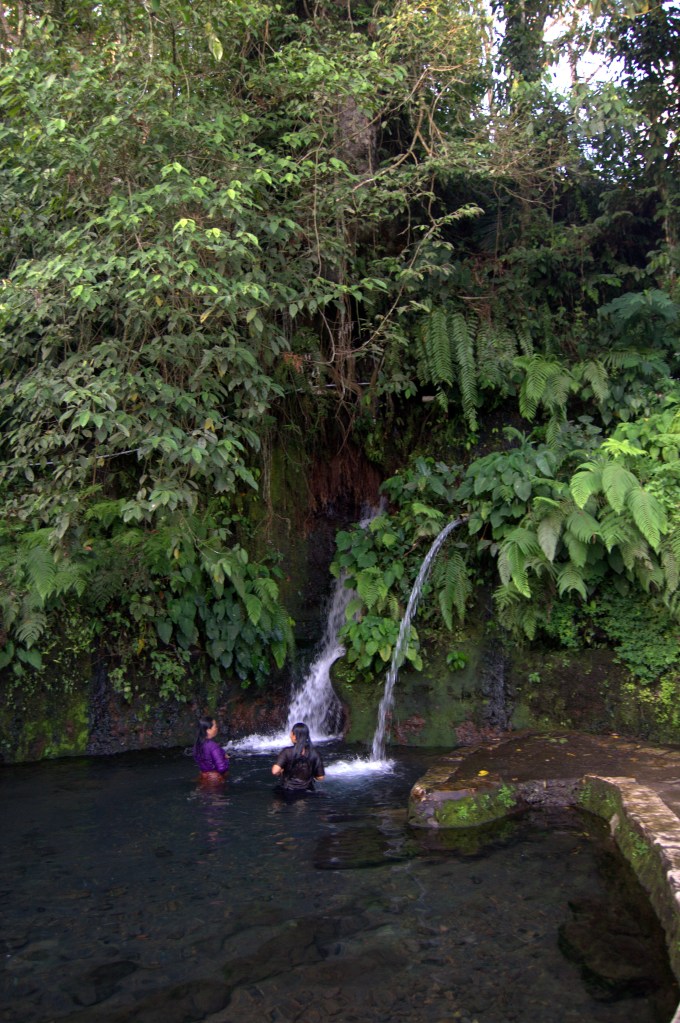 La parada final que nos hace en la cascada de Joben resulta poco impresionante. Hay que pagar para entrar (precio menor para los locales), pero apenas son unos céntimos de Euro. Se trata de una zona con merenderos y piscinas sucias que se llenan del agua de una pequeña cascada cuyas aguas salen de la tierra y de los árboles y de las que se dice que son medicinales. Allí puedes ver monos y gente de la zona bañándose con ropa bajo el chorro de agua. Aunque parece que allí la atracción turística somos nosotros… Prueba de que no deben de pasar muchos occidentales por ahí.