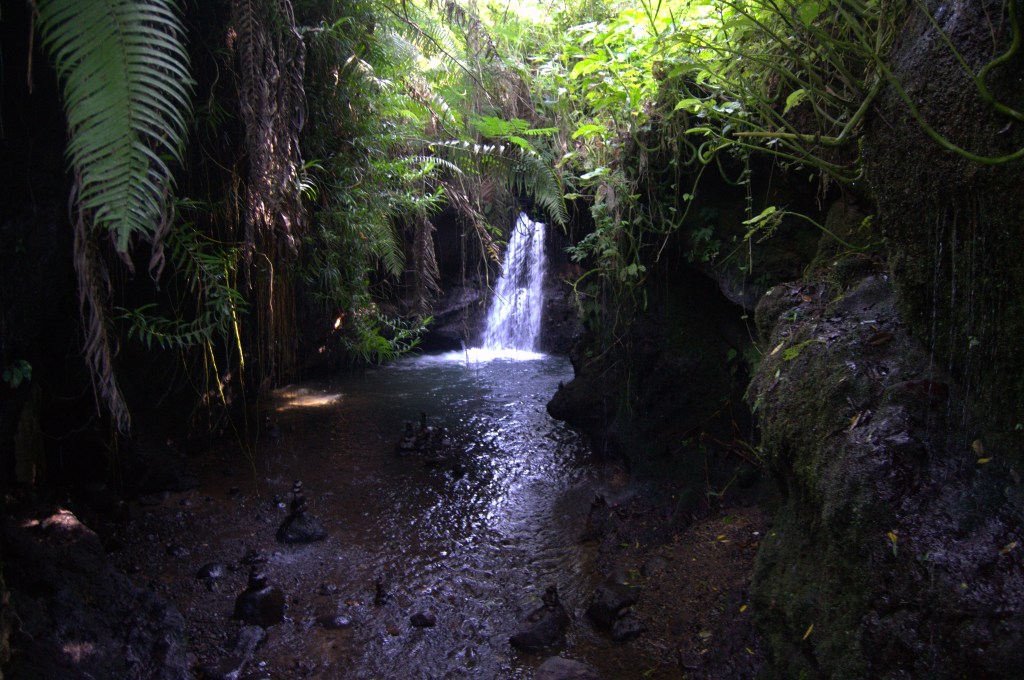 La cascada de Burung es una de esas como encerradas en un agujero de roca y raíces chorreantes a la que llegas tras andar un rato chapoteando sobre el agua por un pequeño cañón. No es una de esas cascadas impresionantes, pero es muy bonita.