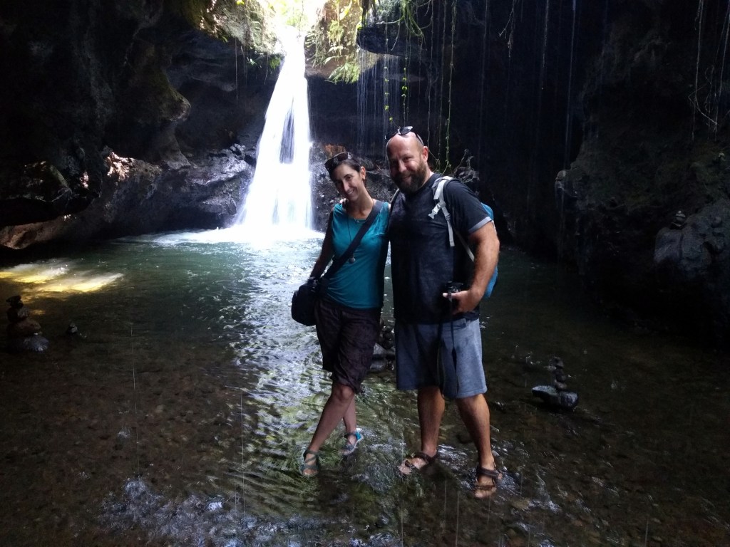 Ambas cascadas tienen una poza para bañarse. Jorge se ha traído bañador pero yo, por desgracia, con nuestra huida repentina del hotel, me lo he dejado en la otra mochila, así que me quedo con las ganas.