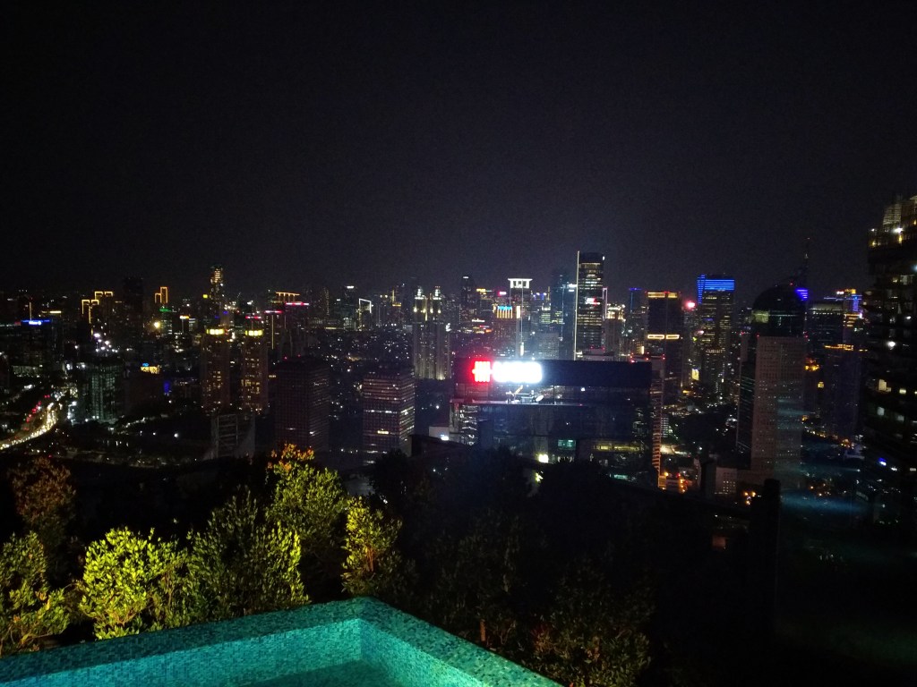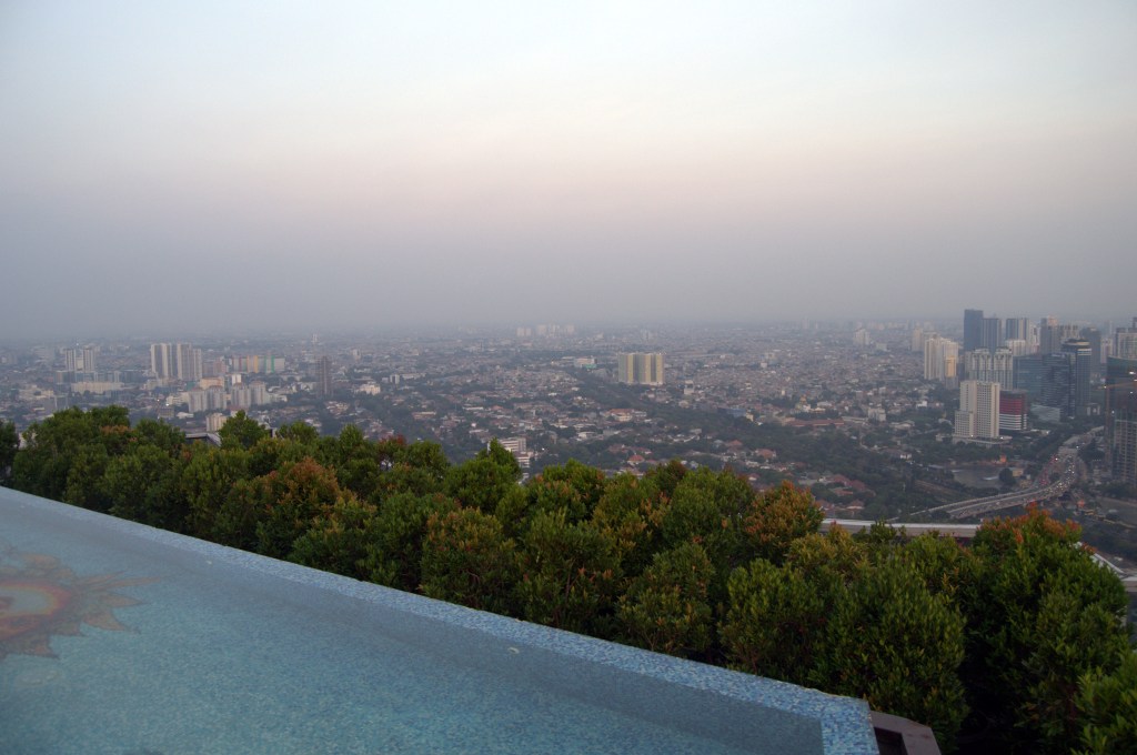 Nos negamos a pagar y ponemos en marcha el plan B: pedimos un Grab y nos vamos a ver el atardecer desde lo alto de Yakarta, en la terraza Skye, sobre uno de los rascacielos. Aquí te cobrarán unos 4 € por una cerveza, pero puede que la necesites a estas alturas del día y el lugar te compensa con comodidad, relax y buenas vistas. Esa zona de la ciudad, más moderna con sus rascacielos, te ofrece también la posibilidad de entrar a algún centro comercial para poder cenar comida occidental o, simplemente, poder pasear un rato sin tener que girarte constantemente para ver si viene alguna moto.