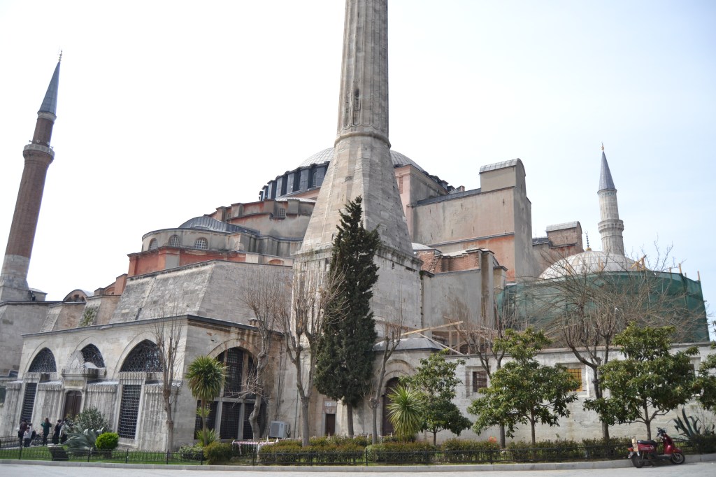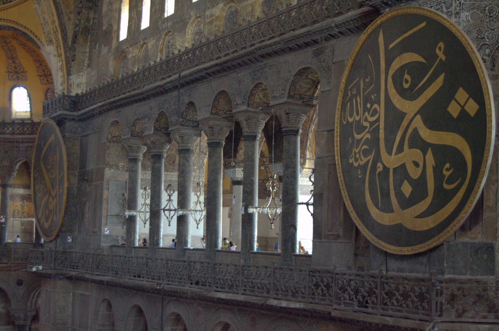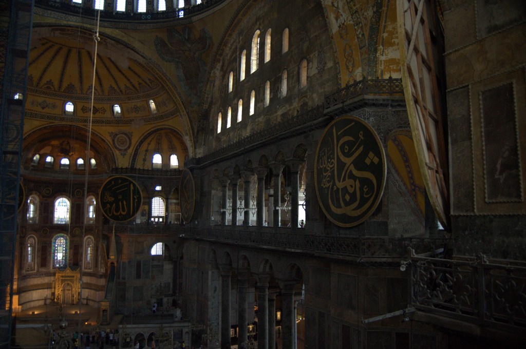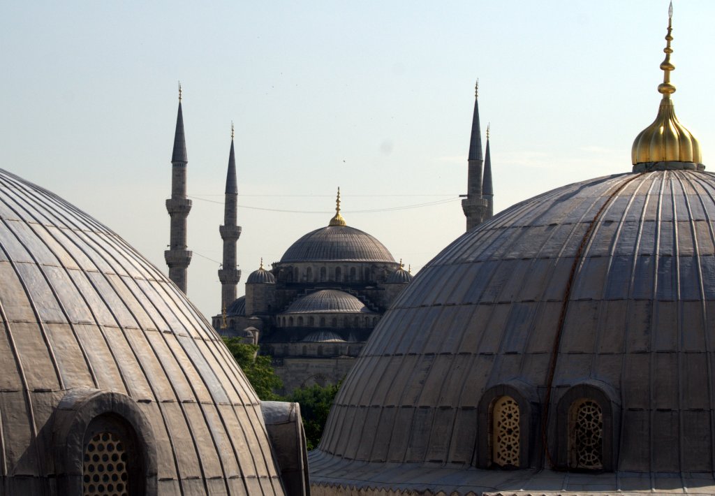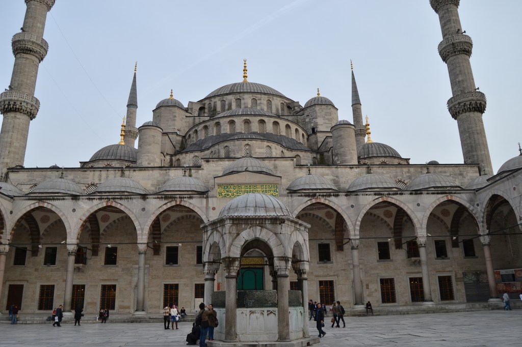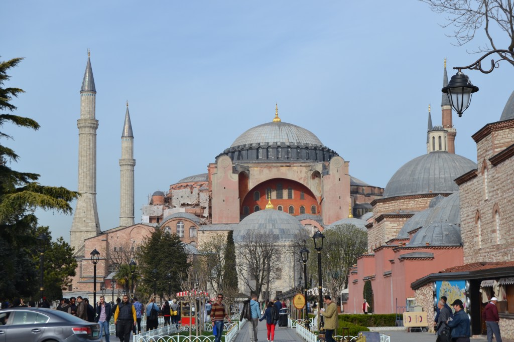 Santa Sofía (Aya Sofya), la joya de Bizancio. Si sólo pisaras Estambul por unas horas, este es el primer monumento que deberías visitar. Este templo ha cambiado de forma y de fe varias veces con el paso de los siglos. Resumiendo podríamos decir que fue construida inicialmente como catedral ortodoxa bizantina allá por el siglo VI. En 1453, Constantinopla fue invadida por el Imperio otomano, que la transformó en mezquita. Los muros de este templo han vivido, a lo largo de los siglos, terremotos, incendios e incluso una gran masacre en su interior. Hasta llegar al año 1935, cuando la mezquita se secularizó y pasó a ser un museo, tal y como la conocemos hoy en día. Volvieron a descubrirse los muros antiguos de la catedral, raspando el yeso que cubría la mezquita y, actualmente, Santa Sofía deslumbra nuestros ojos con sus característicos mosaicos de oro bizantinos (el más famoso, el del emperador Constantino), sus inmensos medallones con caligrafía islámica del mismo color y su imponente cúpula de más de 30 metros de diámetro. Para entrar a ella tendréis que hacer una larga fila que se mueve bastante rápido y pagar una entrada de 60 liras (tranquilos, cada vez que hagáis todos los cambios a euros se os pasarán los sustos).