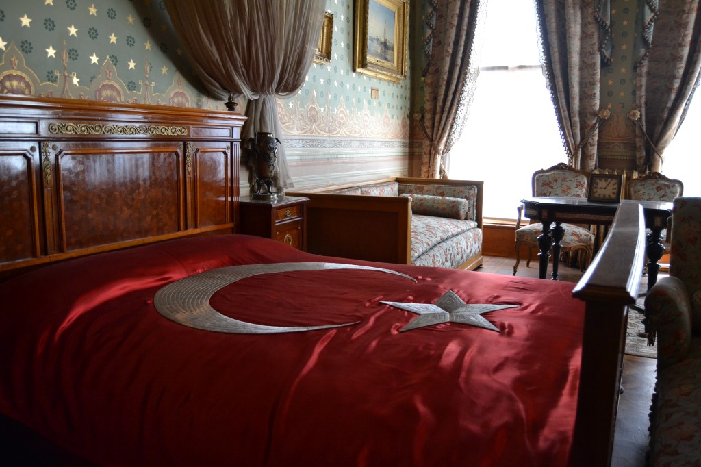 Cerca de allí, entre Beşiktaş y Kabataş, se encuentra el Palacio de Dolmabahçe, residencia de los últimos sultanes y del indiscutible icono turco: Atatürk. Este palacio, construido a mediados del siglo XIX, puede resultar menos atrayente y nada exótico para los occidentales, ya que se trata de un edificio que mezcla el estilo otomano con el neoclásico, el barroco y el rococó. Aunque eso no le resta belleza e interés histórico. Hoy en día es un museo (con una superficie de 15 000 metros cuadrados) y tienes que pagar una entrada de 60 liras (más 20 liras extra si quieres visitar el harén). Los lunes está cerrado y las visitas han de ser guiadas. Lo cual está muy bien, pero sólo hacen las visitas guiadas en inglés o en turco, aunque haya folletos en más idiomas (entre ellos el español).