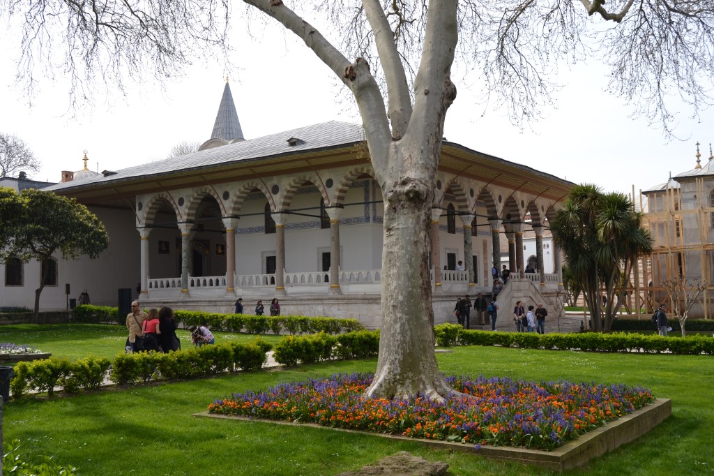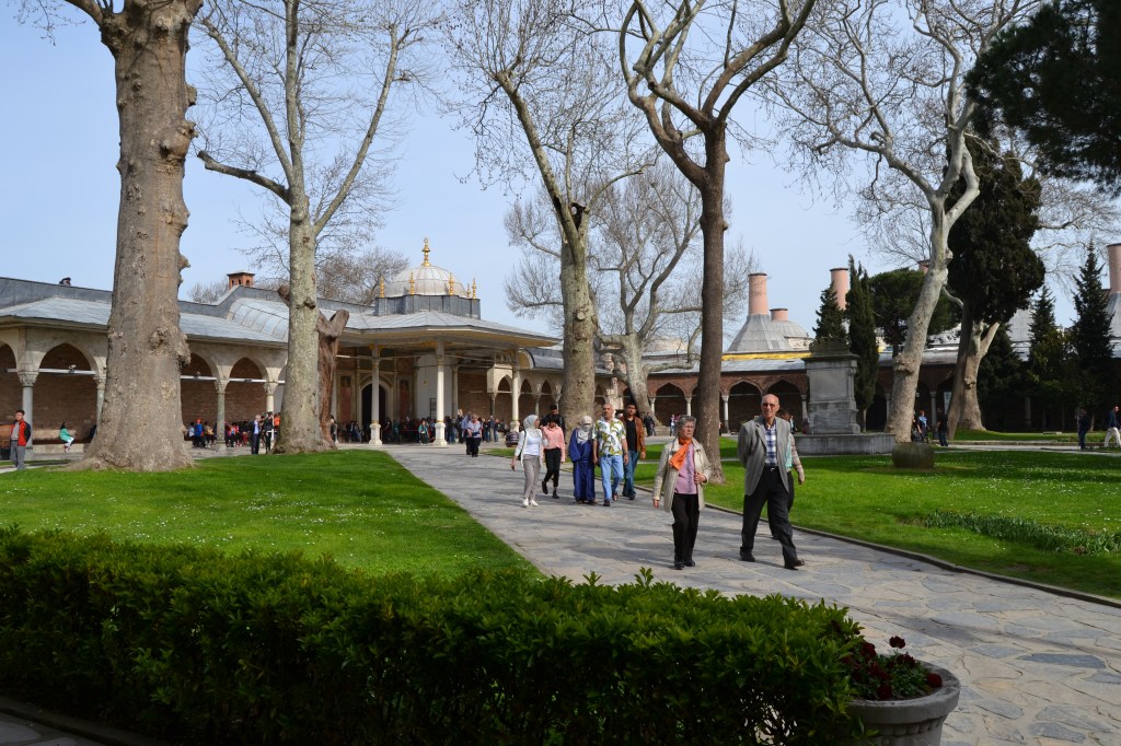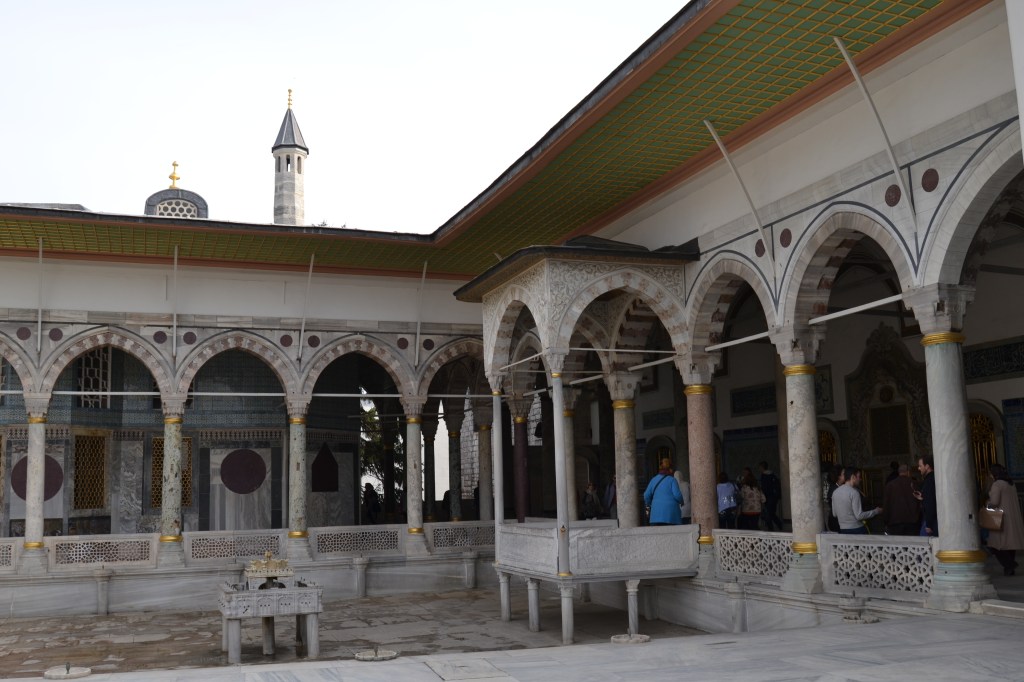 Este palacio es como la Alhambra de Turquía. Fue construido en 1465 después de que Mehmed II tomara Constantinopla. En él vivieron todas las generaciones de sultanes hasta mediados del siglo XIX (reciente, ¿eh?), cuando el Sultán Abdulmecid decidió trasladar su corte al Palacio de Dolmabahçe, mucho más barroco (en esa época ya empezaba a atraerles lo occidental). Ten en cuenta que visitarlo puede llevarte 3 horas perfectamente. Es un conjunto de pabellones, patios y mediterráneos jardines con fuentes desde donde puedes contemplar el Bósforo, el Cuerno de Oro y todo Estambul: Asia, al frente; Europa, a tu izquierda. Hay una cafetería en la que puedes comer o tomarte algo y relajar la vista observando el trajín de ferris y barcos cargueros mientras descansas los pies después de haber visitado todos los pabellones-museo repletos de cerámicas de colores y románticas ventanas de madera donde se guardan los tesoros, objetos y ropajes de la época otomana, entre otras cosas.