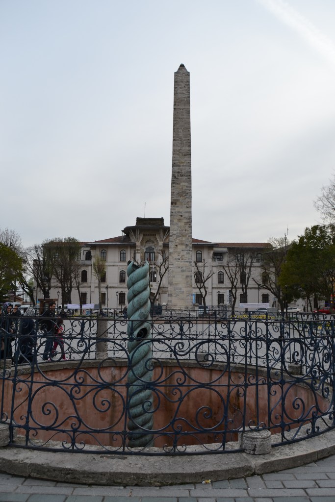 Callejea un poco por detrás de la Mezquita Azul y hallarás un mercado que termina en una plaza donde muchas veces ofrecen conciertos. Por otro lado, junto a los parques y fuentes que separan Santa Sofía y la Mezquita Azul, se extiende otra plaza alargada (Sultanahmet Meydanı) que antaño fue el hipódromo de Constantinopla. En ella se encuentra el Obelisco de Teodosio, traído de Egipto. También en la misma plaza están la Columna Serpentina, la Fuente Alemana y la Columna de Constantino.