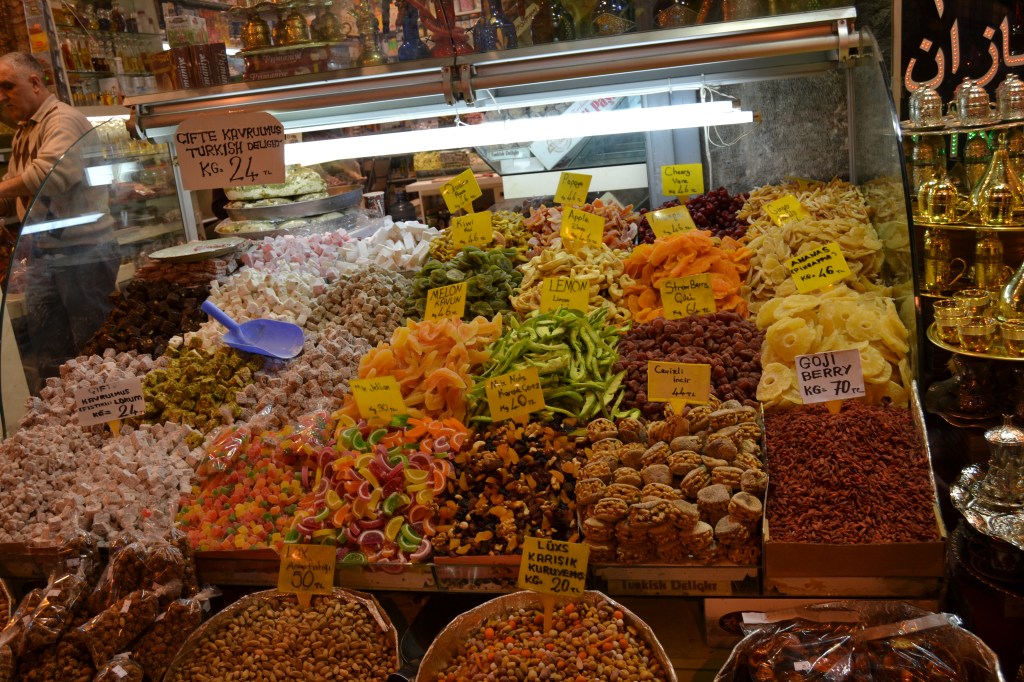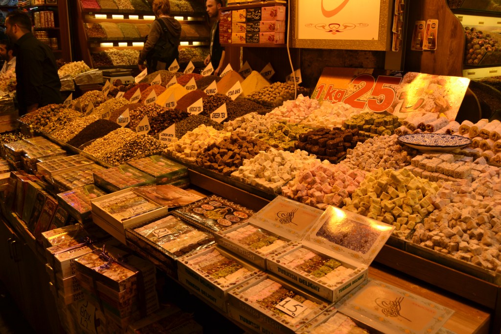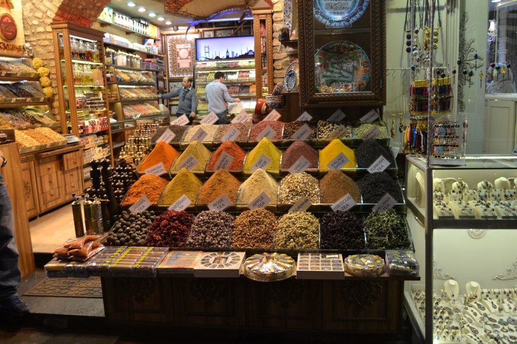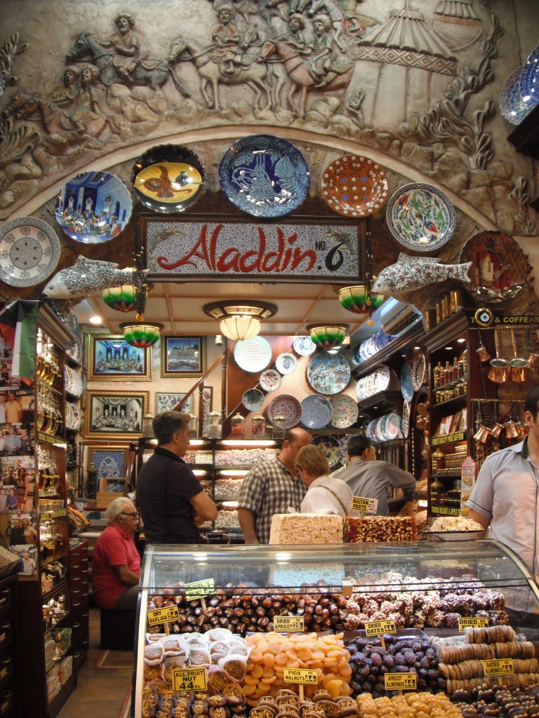 El Bazar de las Especias (Mısır Çarşısı) es el más fácil de encontrar y el más rápido de visitar. No te perderás en él y, aunque hoy en día se vende un poco de todo en todas partes, sobre todo hallarás especias y tés. Por supuesto, también juegos de té, molinillos, dulces turcos, cachimbas, etc. El idioma no será un problema, así que no te preocupes. Enseguida te leerán en la cara tu nacionalidad y, si creen que eres español, empezarán a decirte cosas en español, como «¡tenemos veneno para la suegra!» o «¡más barato que el Corte Inglés!» Eso sí… ¡regatea! Espero que seas bueno regateando porque aquí puedes y debes hacerlo. Tú tranquilo, cuando te pases ya lo notarás…
