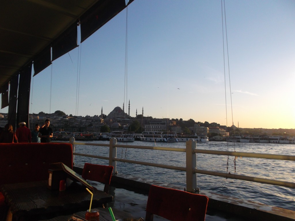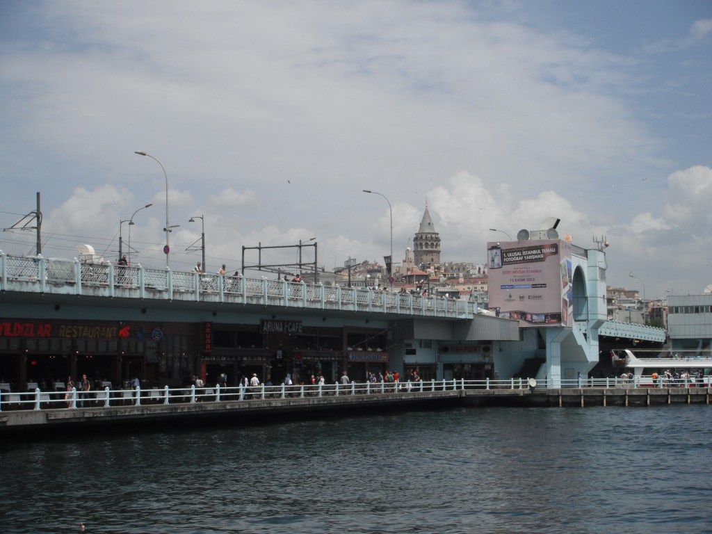 El Puente de Gálata es el camino más transitado que une ambas orillas del Cuerno de Oro y seguramente es el que utilices para cruzar de Eminönü al más occidental barrio de Taksim y Pera. Sin embargo, este puente no es únicamente un puente, sino también un rincón lleno de actividad. Puedes curzarlo por arriba o por abajo. Por arriba, andarás junto a las decenas de pescadores que pasan las horas pescando pequeños peces que después te venderán en bocadillos por los puestecitos ambulantes de los alrededores. La verdad es que están bien buenos, aunque no es muy práctico comerse un pescado en bocadillo, por el tema de las espinas. Pero te recomendamos que los pruebes. Si lo cruzas por abajo, encontrarás un montón de restaurantes donde comer pescado (bien servido, no entre panes…) o incluso fumarte una cachimba casi a ras del mar. Nosotros te recomendamos el restaurante del padre de una amiga con excelente trato y calidad: Marinero Cafe & Restaurant.
