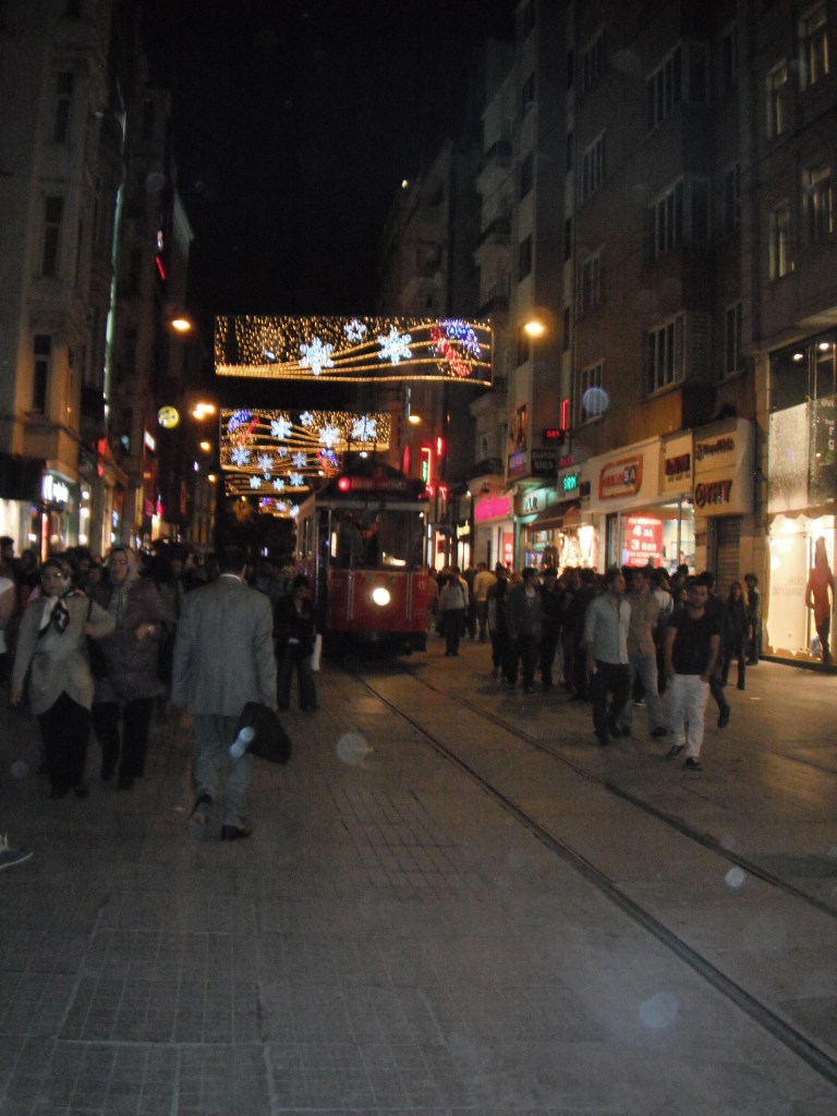 Istiklak Caddesi (la calle de Istiklal) es la principal avenida para ir de tiendas (modernas). Es peatonal, aunque hay que prestar un poquito de atención a un pequeño vagón-tranvía de estética muy fotogénica que la sube y la baja de vez en cuando. A lo largo de la calle hay siempre músicos callejeros, grupos espontáneos de gente que se pone a bailar estilo turco agarrados de la mano (aunque esto también es fácil encontrarlo en el puerto de Kadiköy o cualquier otro punto de transición de gente, los turcos son muy dados a sumarse a este baile) y unos puestecitos de helados de tacto chicloso que llevan sorpresa en la forma de servir… Pídele uno a tu compañero de viaje y haz un vídeo mientras se lo sirven.