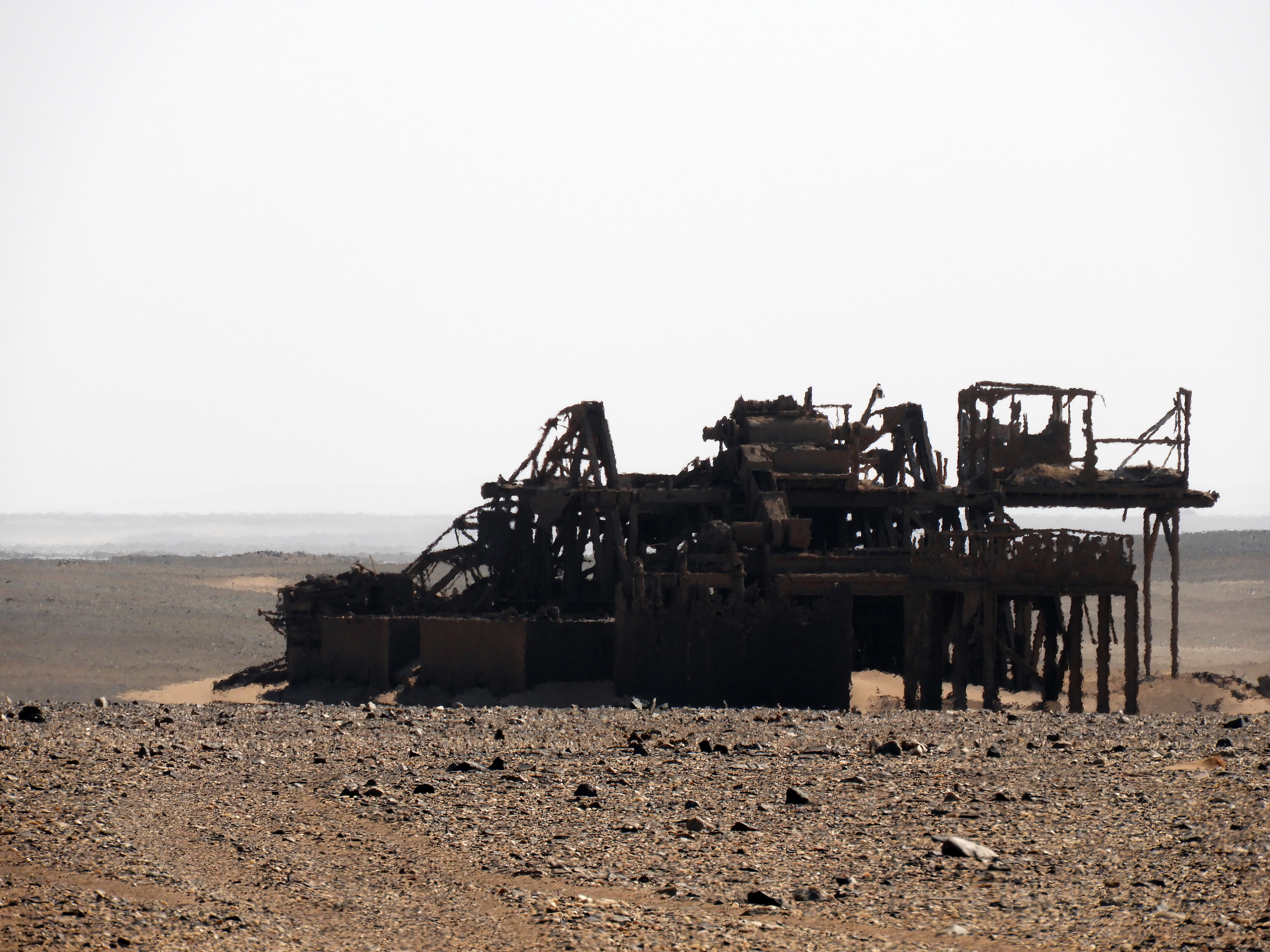 Lo más inquietante, al observar los esqueletos de hierro golpeados por las olas sin piedad desde quién sabe cuánto tiempo, es imaginar la historia que habrá detrás de cada naufragio y la desesperante marcha a través de un desierto que (como hemos visto con nuestros propios ojos) se extiende cruel hacia el interior durante cientos de kilómetros hasta dar con los pueblos más cercanos. Quien no pereciera en las aguas, seguramente lo haría en las arenas… De hecho, además de los esqueletos de ballenas o elefantes que puedes encontrarte (nosotros vimos lo que quedaba de uno de ballena), dicen que se han encontrado en aquel desierto también restos humanos en alguna ocasión.