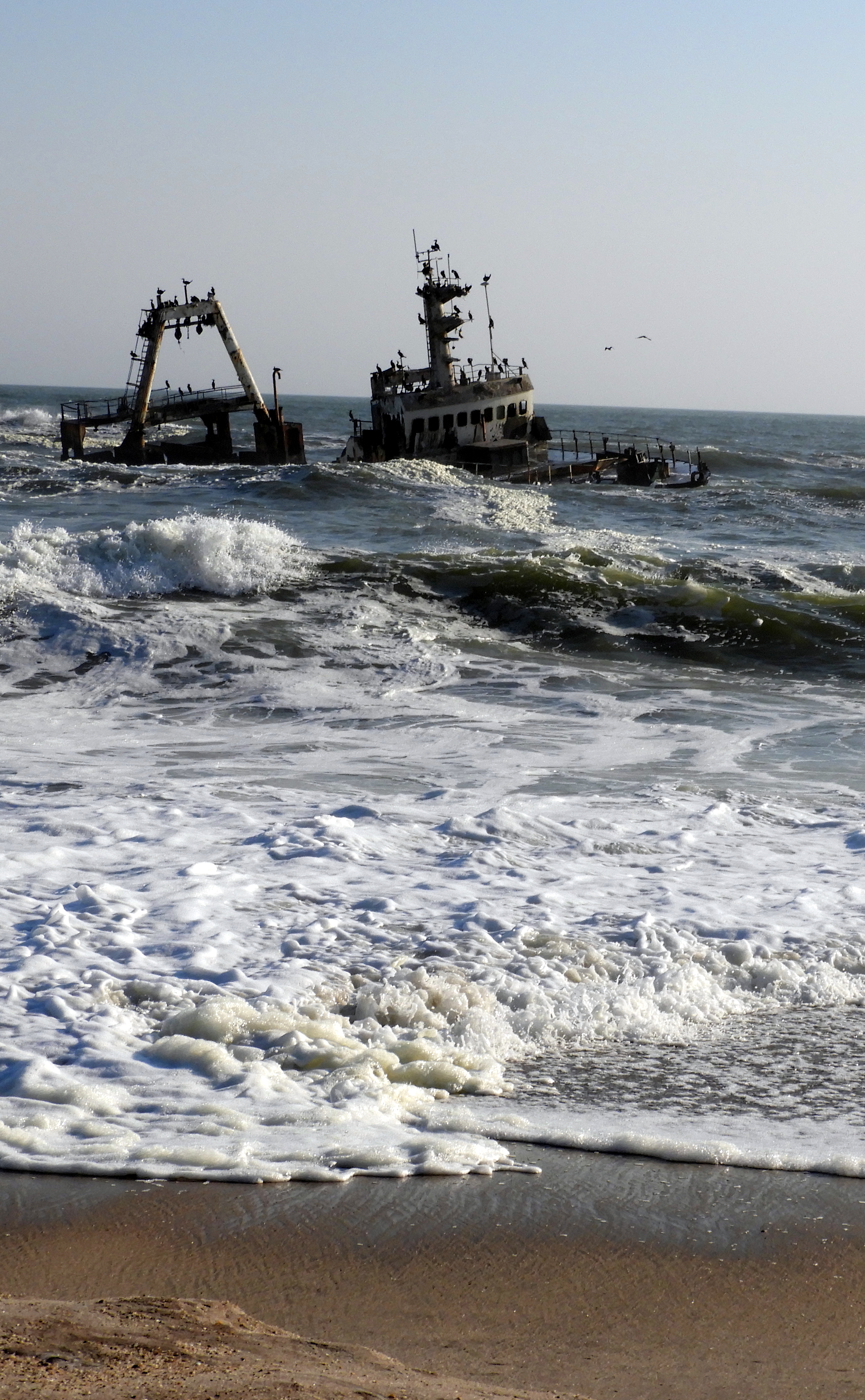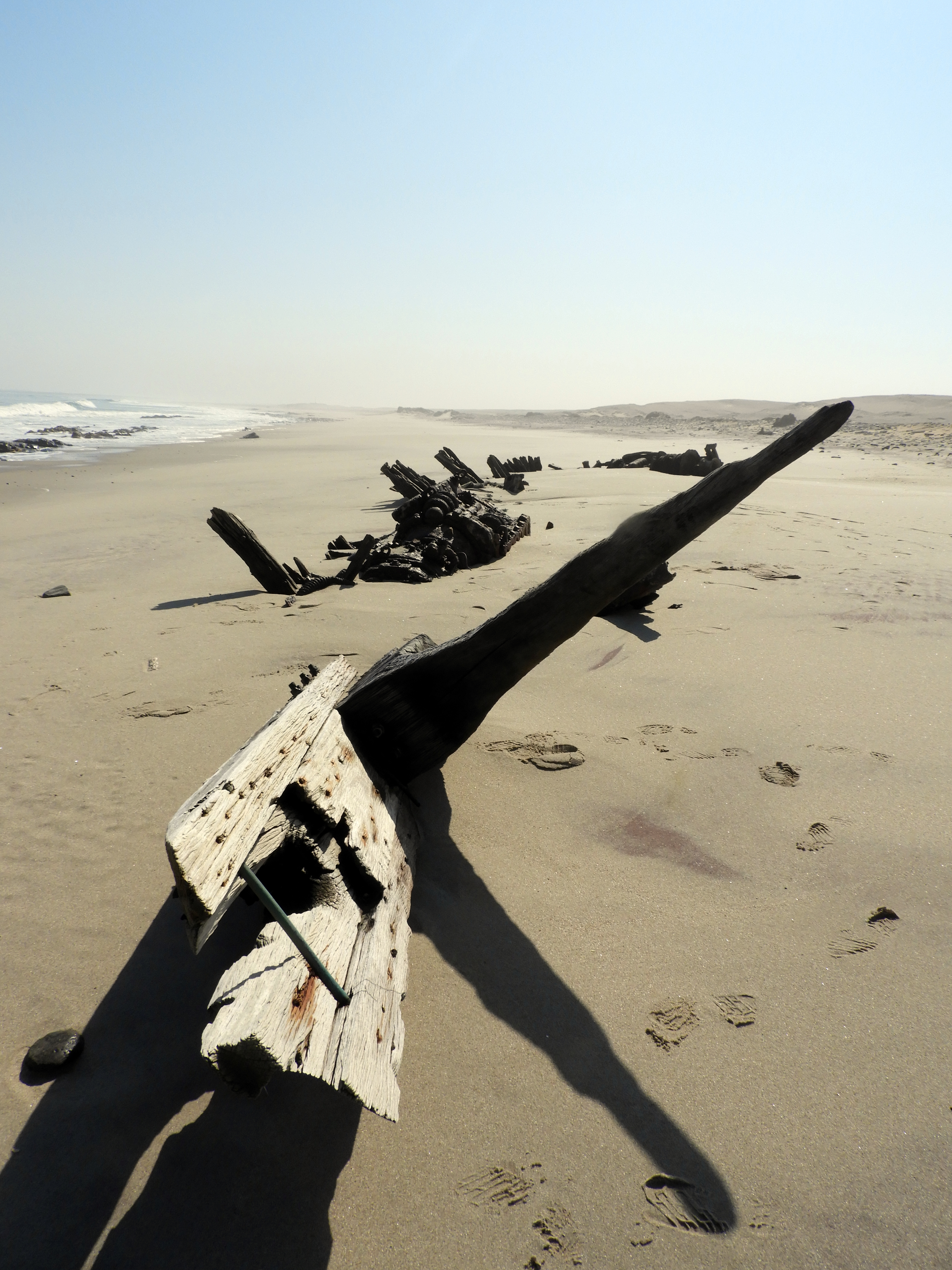 La Costa de los Esqueletos ocupa un tercio de la costa namibia y se extiende unos 500 kms. Es famosa por los miles de naufragios que ha habido en ella en los últimos 5 siglos. Varados en las rocas cerca de la playa o en la propia playa ya medio cubiertos de arena yacen los esqueletos de estos pobres barcos que encontraron en las nieblas y corrientes traicioneras de esta costa su trágico final.