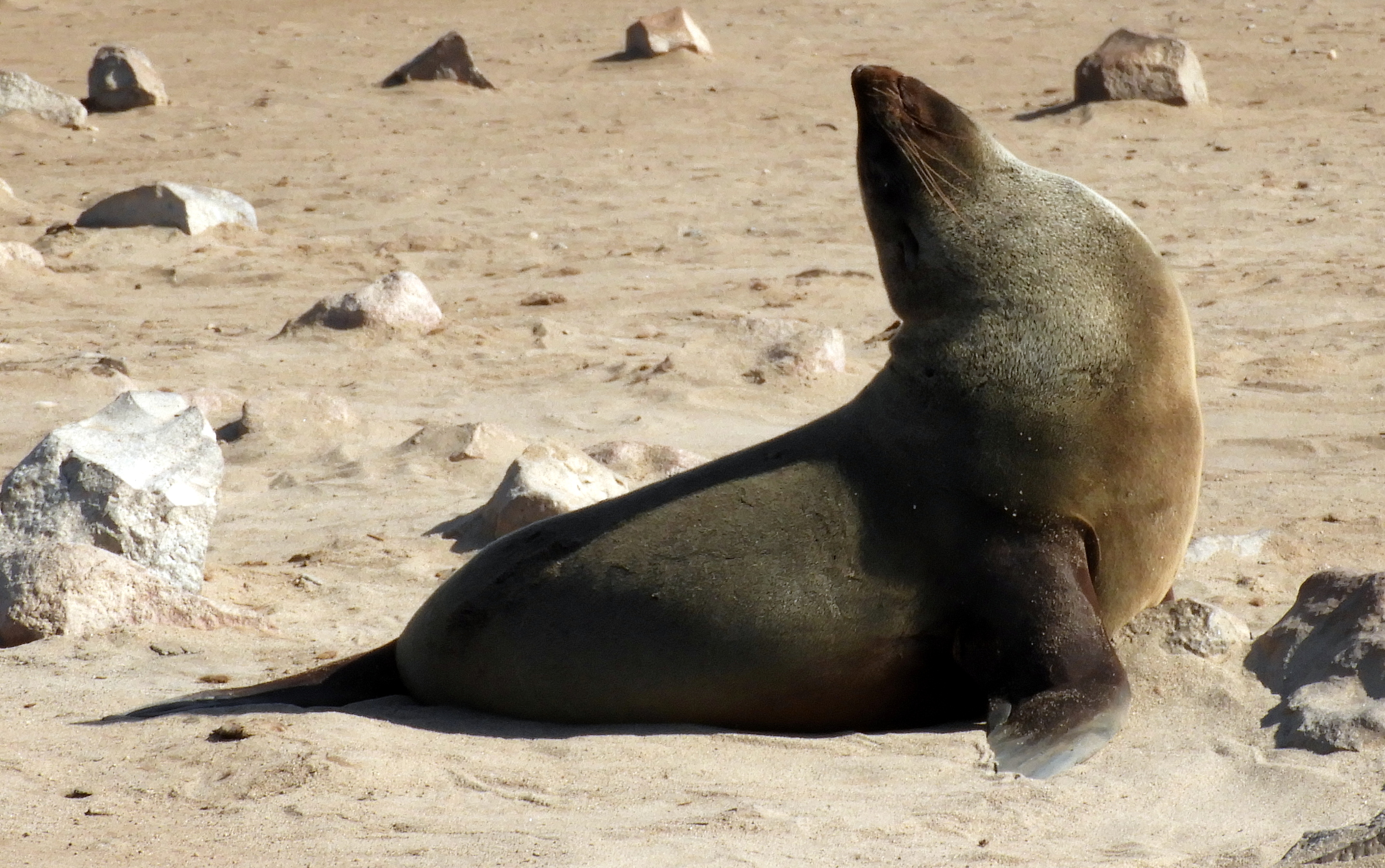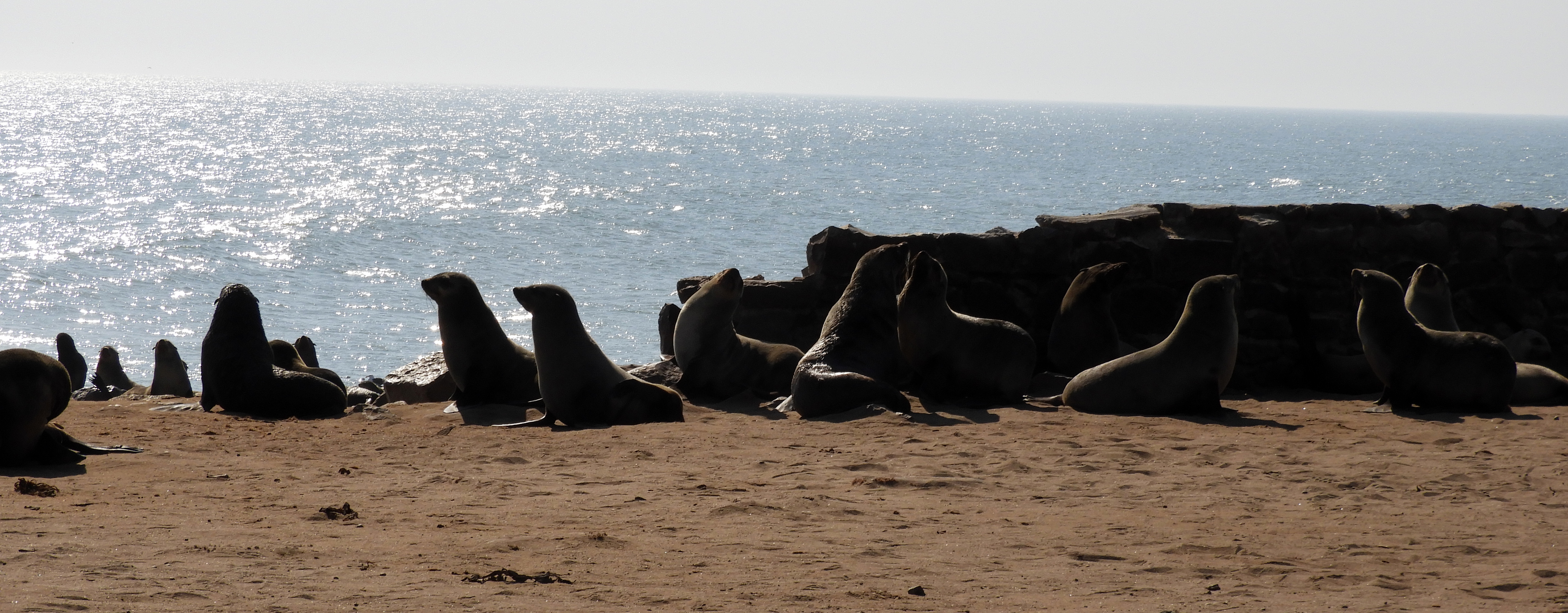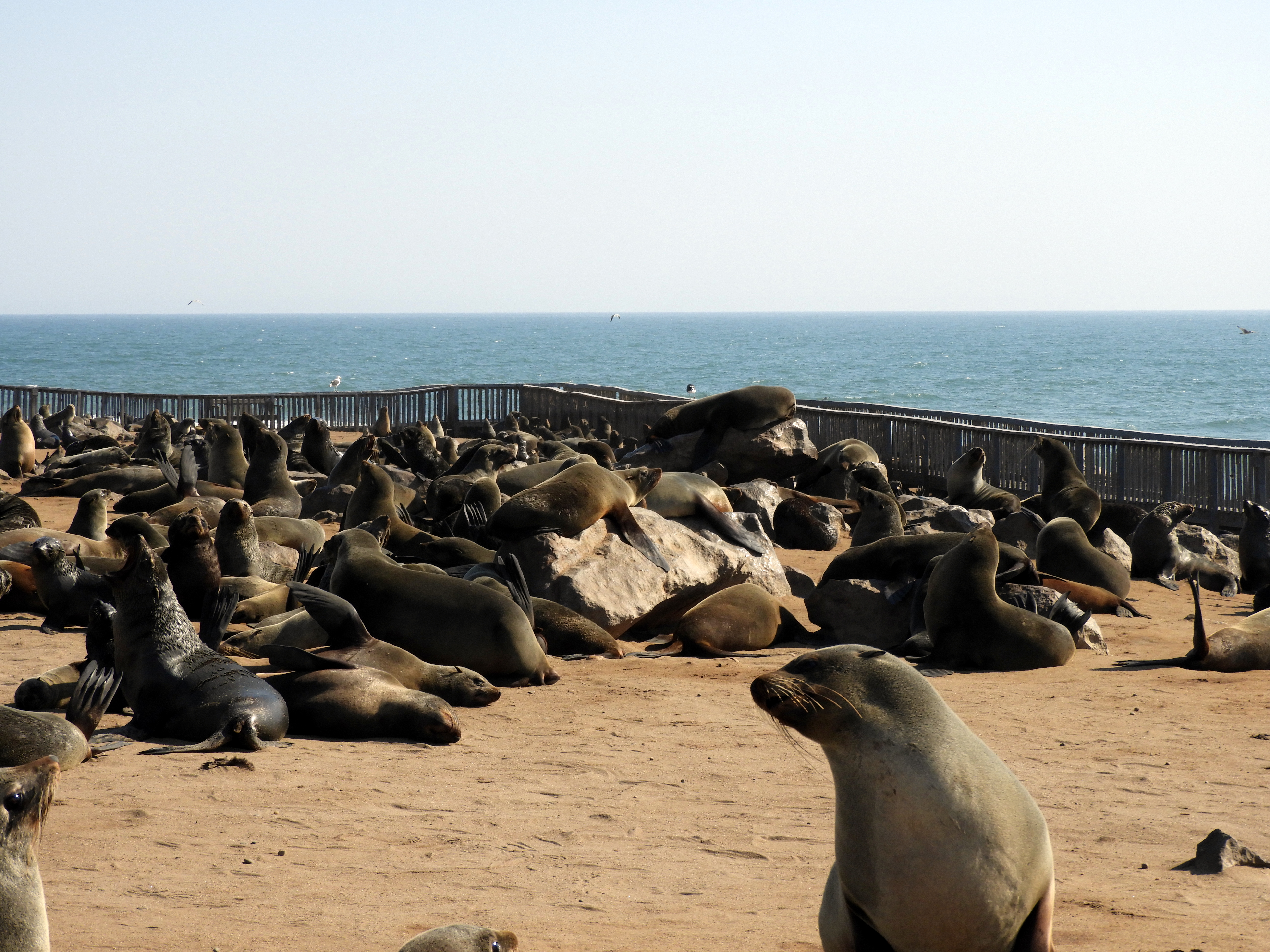 Pasada toda la zona de Skeleton Coast, ya cerca de Swakopmund y de los primeros indicios de civilización , se encuentra Cape Cross, donde hay un camping con un restaurante en la playa muy agradable para comer a buen precio, buen producto y una maravillosa playa para disfrutar (Cape Cross Lodge), y, un par de kilómetros más abajo, una reserva de leones marinos. Hay que pagar una entrada que a nosotros nos costó 350 dólares namibios por dos personas y un coche, un poco caro, la verdad.