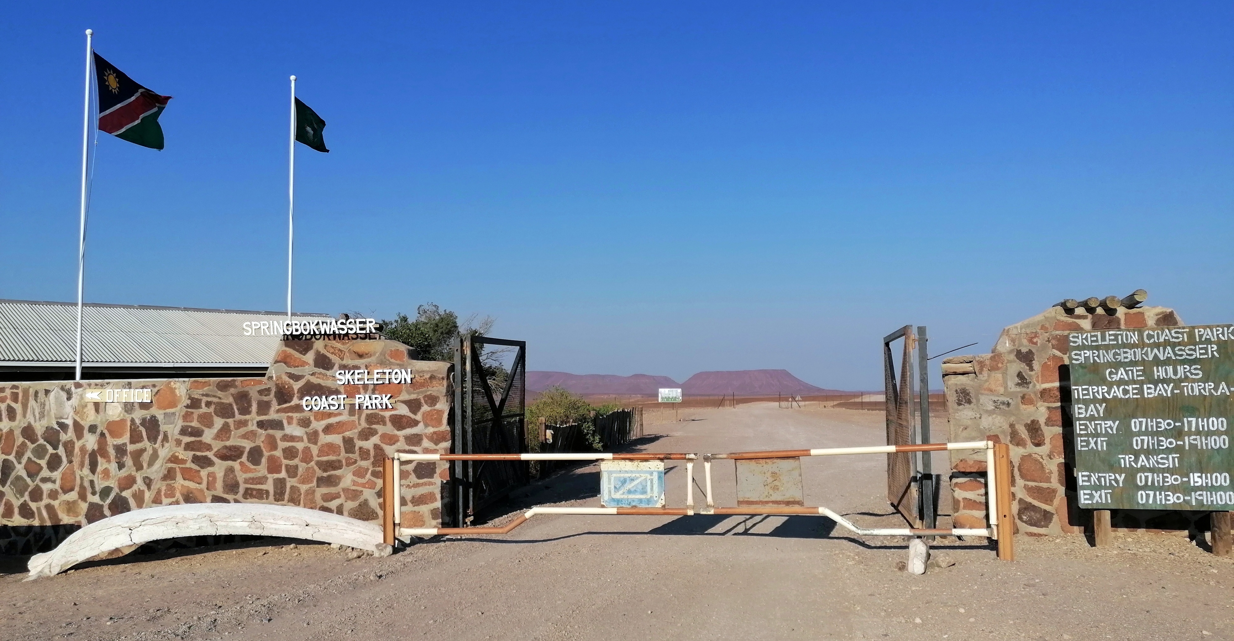 Nosotros viajamos “sólo” desde Springbokwasser hasta Ugabmund, siguiendo luego la costa (que ya no es el parque natural de Skeleton Coast) hasta Swakopmund, donde hicimos noche en el Tiger Reef Campsite. Si viajas en la misma dirección que nosotros, no tienes que pedir ningún permiso ni pagar ninguna tasa, tan sólo “fichar” al entrar y salir. No obstante, por lo visto, si lo haces en la dirección inversa, al salir por la puerta de Springbokwasser te hacen pagar algo.