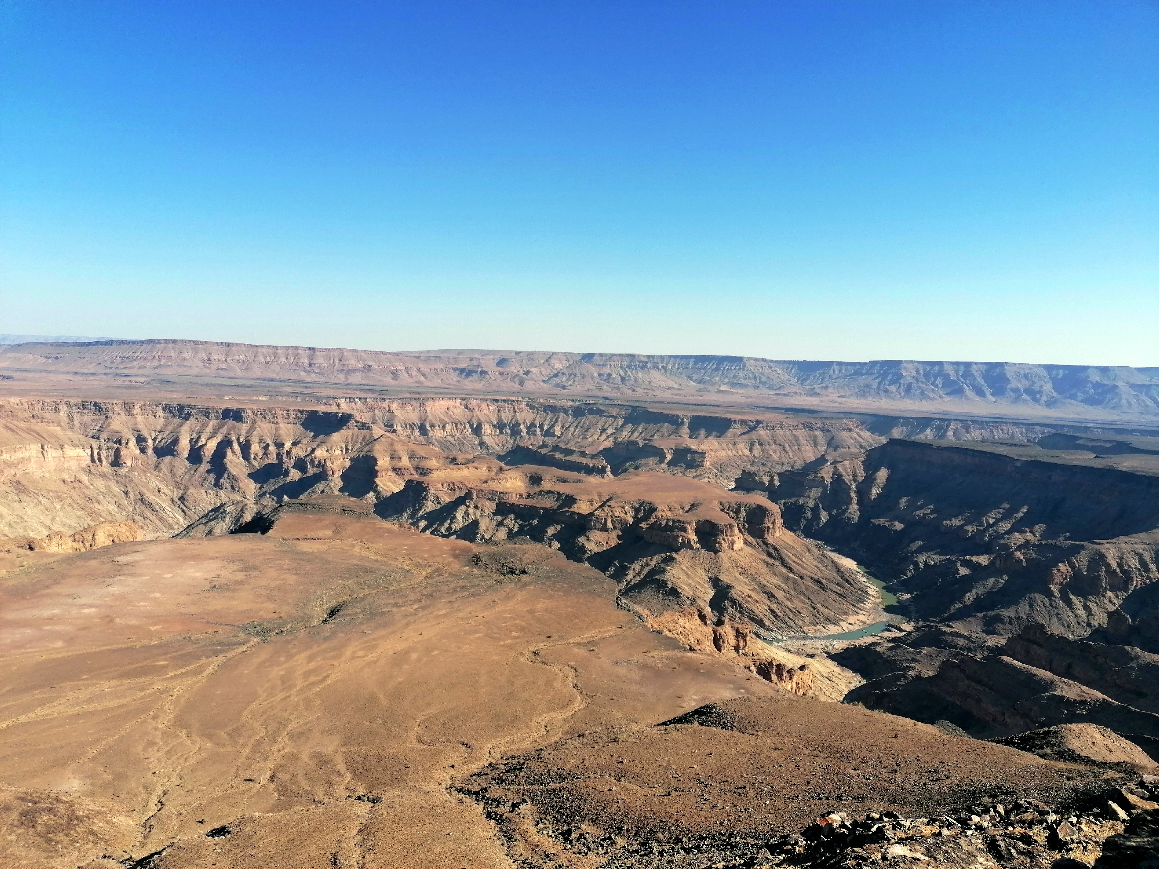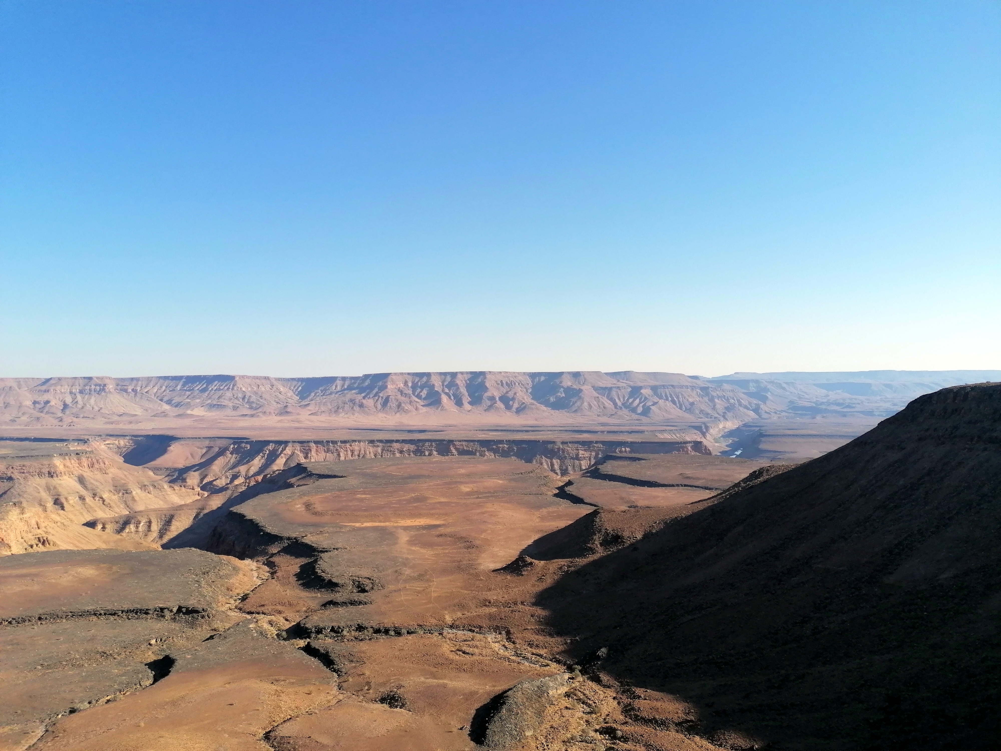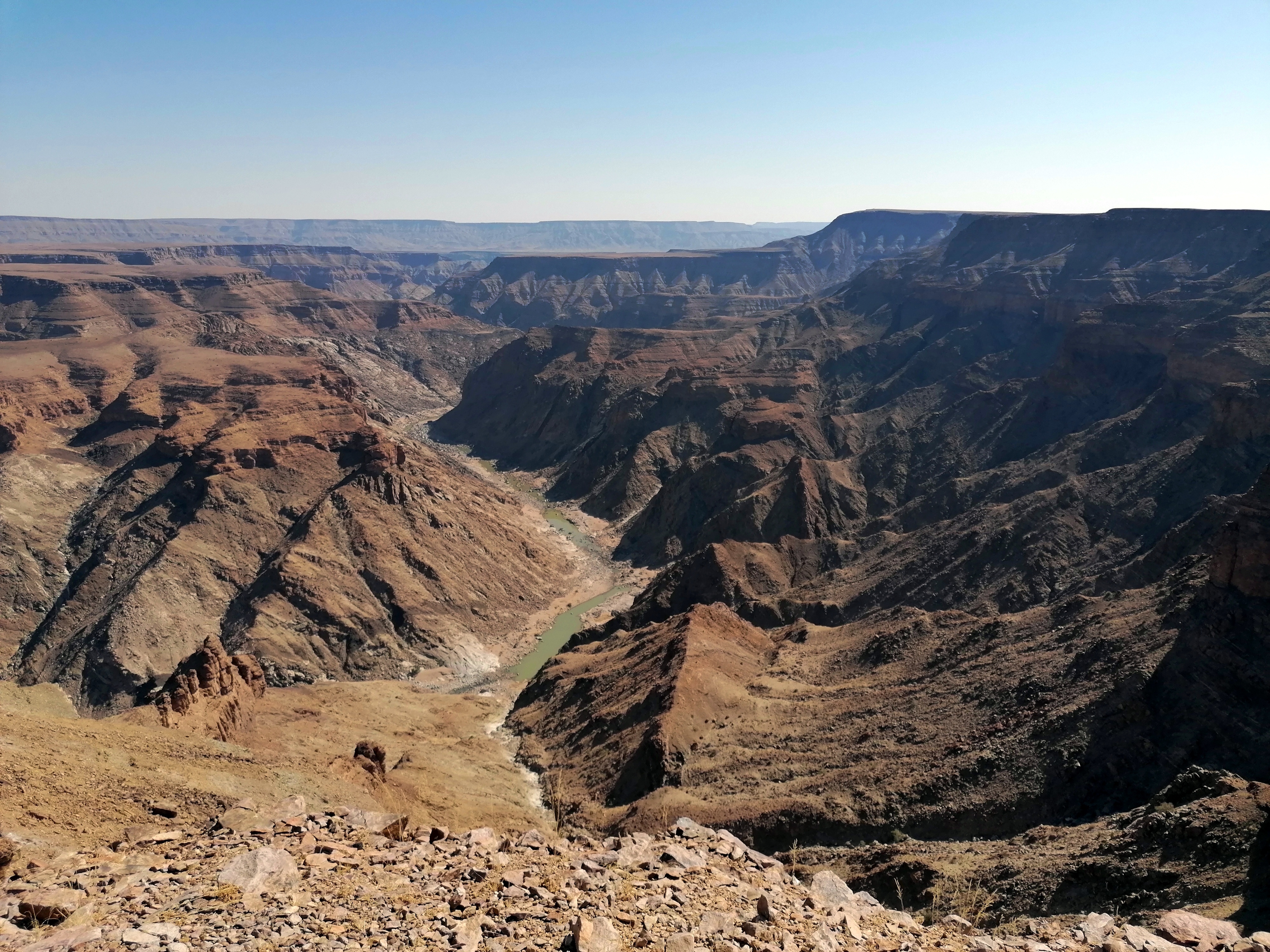 Al sur de Namibia, haciendo frontera con Sudáfrica, se encuentra el Fish River Canyon. Este gran cañón que tiene la mitad de años que la Tierra y se formó antes de que el gran continente de Gondwana (cuando América del Sur y África aún eran uno) se separara, es el segundo cañón más grande del mundo, después del Gran Cañón del Colorado.