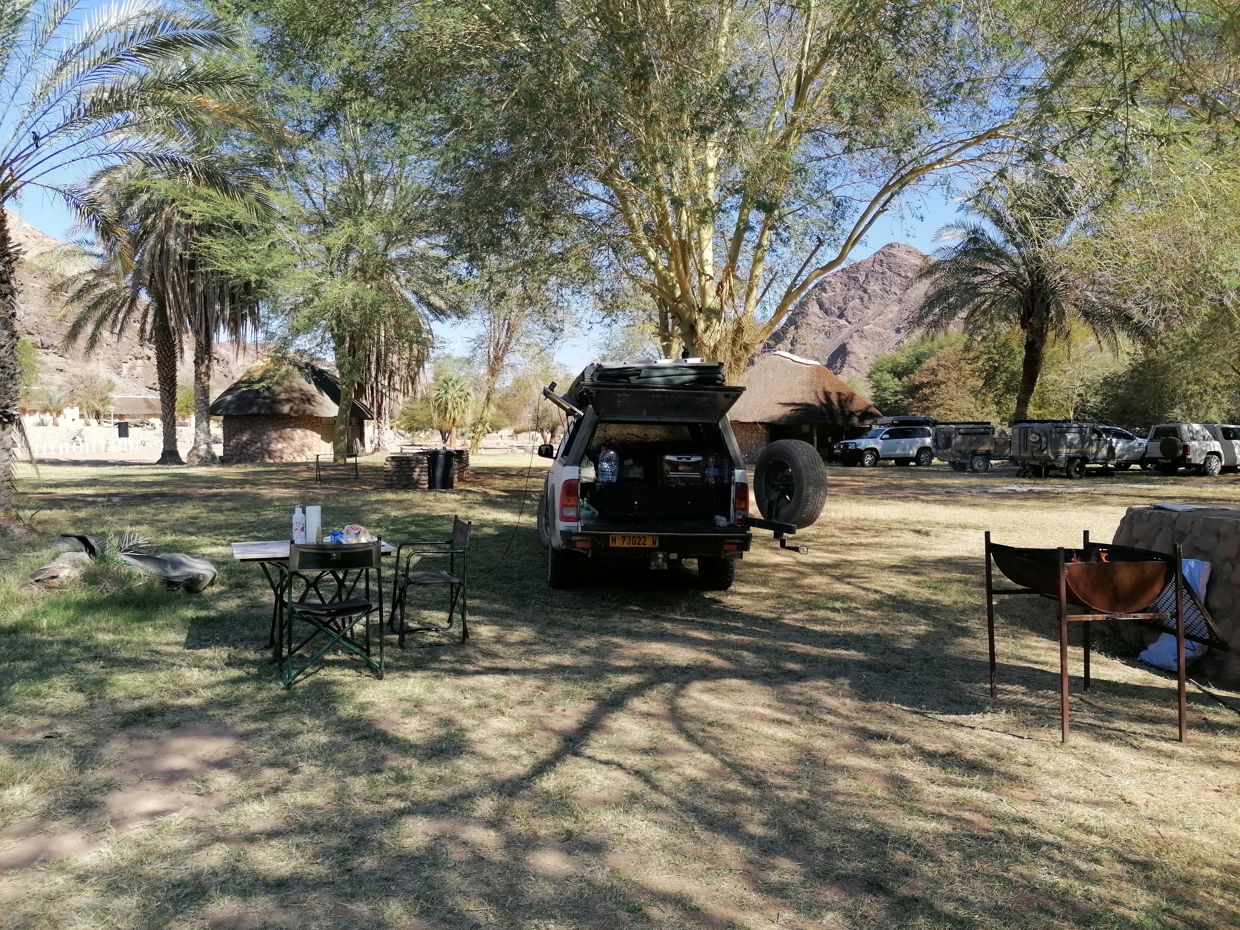 Nuestra visita al Fish River Canyon paraba en dos campings: Hobas y Ai-Ais. Ambos son campings del gobierno (NWR) y, al encontrarse una vez más dentro de lo que es el parque natural del cañón, hay que pagar la tasa de entrada. Al llegar a Hobas, donde hicimos nuestra primera noche, a nosotros nos cobraron 350 dólares namibios.