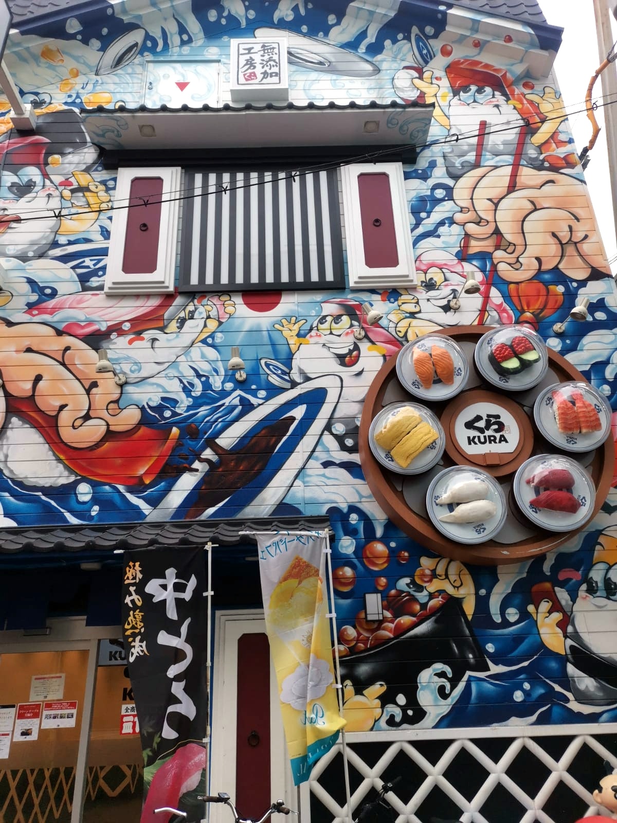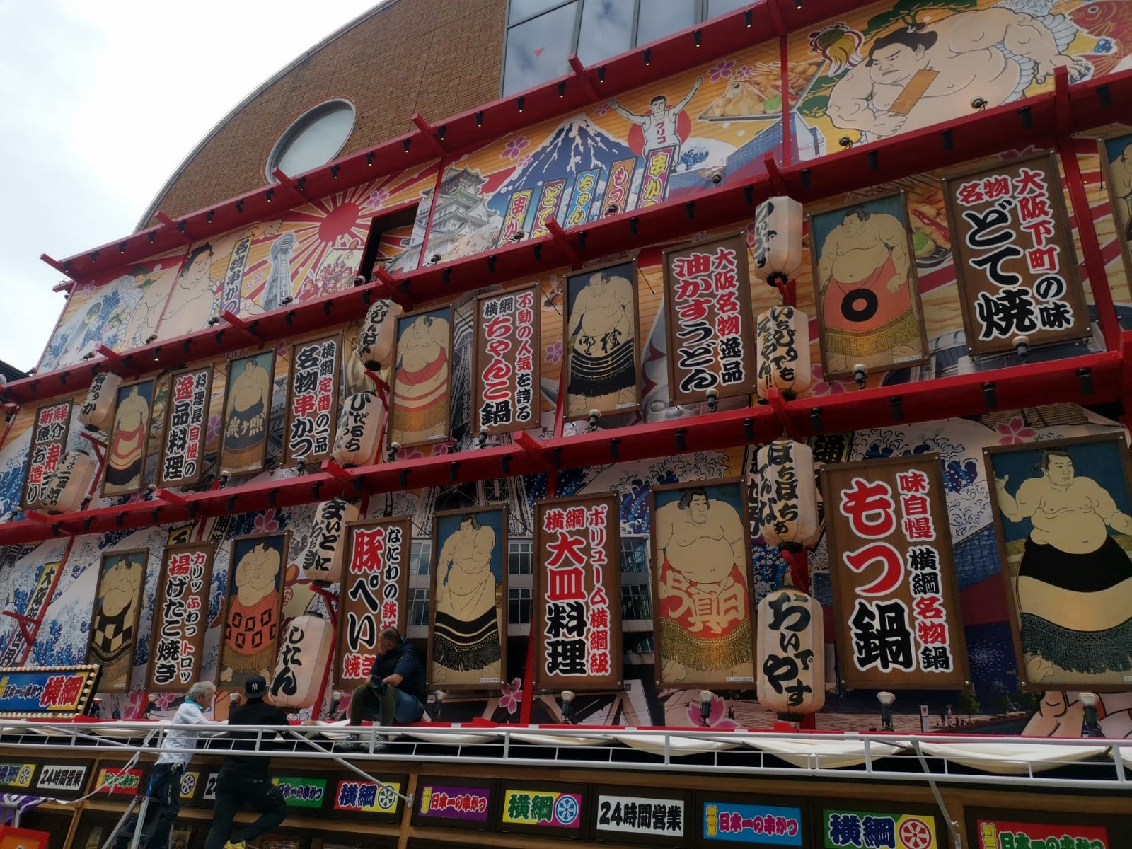 Después de visitar el castillo, nosotros nos fuimos a la zona de Shinsekai, donde está la torre de Tsutenkaku. En este curioso punto de Osaka se cruzan dos calles llenas de colores que de repente te sumergen en una feria. A tu alrededor hay numerosos restaurantes con grandes muñecos (cangrejos, dragones, barcos…) sobre sus fachadas y tiendas-tómbola donde la gente juega para conseguir premios. Entre un estímulo visual y otro, las estatuas del dios Billiken, con aspecto de feliz duendecillo, se cuelan sonrientes. Nosotros no jugamos en ninguna tómbola, pero sí que aprovechamos para comer en uno de los restaurantes que había en estas calles.