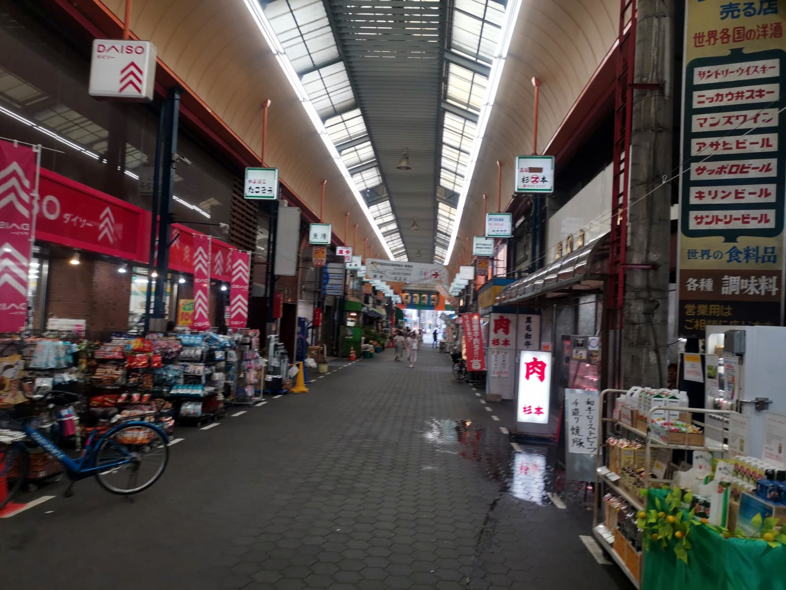 Terminando ya nuestra jornada en Osaka, asomamos un tramo por la calle cubierta de Shinsaibashi, que es una calle llena de tiendas occidentales. Desde allí, al tomar por otras calles el camino de vuelta hacia la estación, nos encontramos con muchas tiendas curiosas de segunda mano y ropa vintage y con un bar en el que puedes acariciar y alimentar a una sorprendente variedad de animales (no entramos a probarlo porque nos dio miedo lo cara que pudiera salirnos la consumición). Más adelante en nuestro viaje (en Tokio) nos acostumbramos a ver muchos más establecimientos de este tipo.
