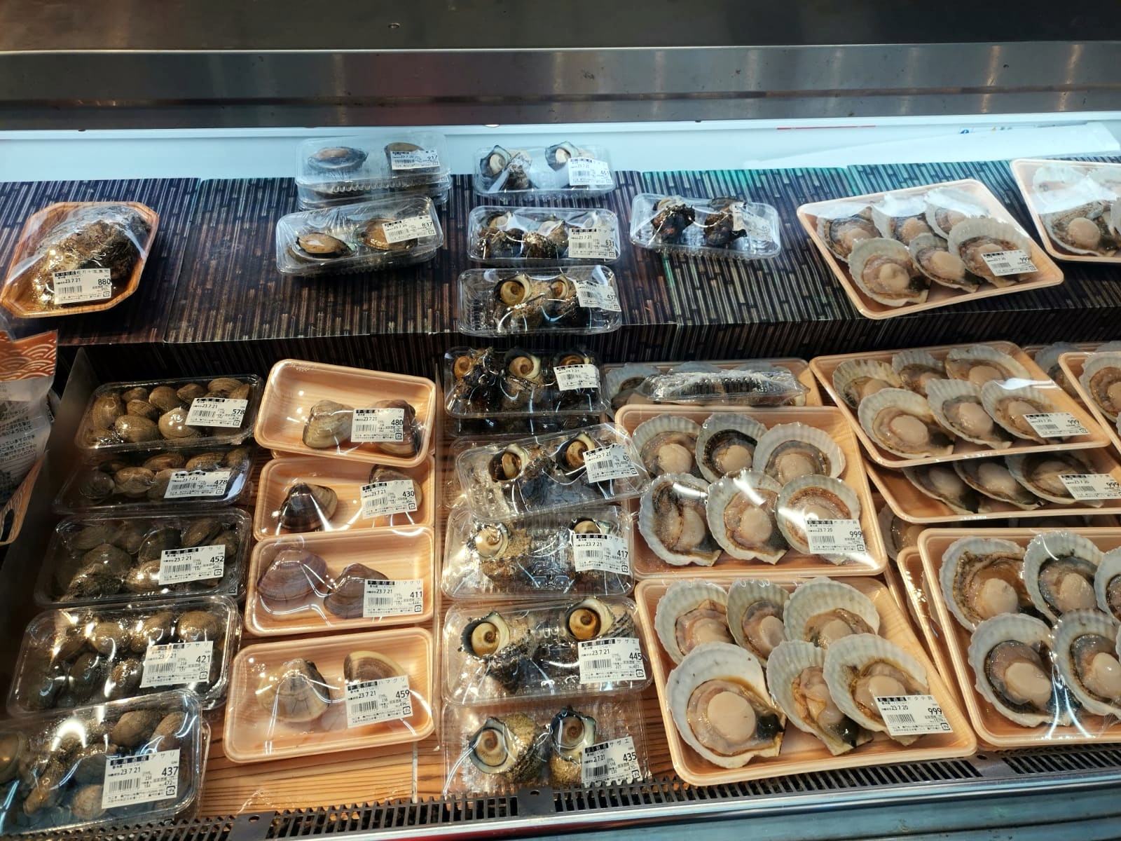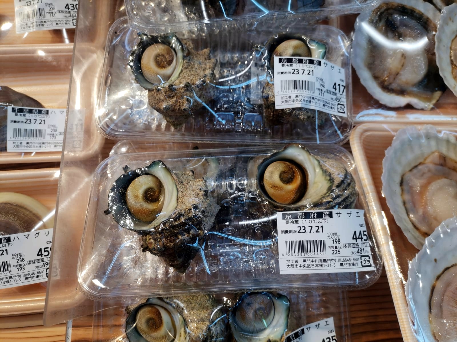 Después de comer, paseamos por el barrio de Nipponbashi, en el que podemos encontrar numerosas tiendas de electrónica, sex-shops, tiendas «frikis» de muñequitos del mundo del manga e incluso vimos un bar en el que las camareras, a un lado de la barra, se tomaban algo con los clientes, sentados al otro lado, como si de una cita se tratase (no sabemos qué nombre tendrá este tipo de bar, pero seguro que tiene alguno). Nipponbashi nos dejó en el Mercado Kuromon Ichiba (que cierra a las 18:00), por el que curioseamos un poco los puestos de carne, pescado y otros productos.