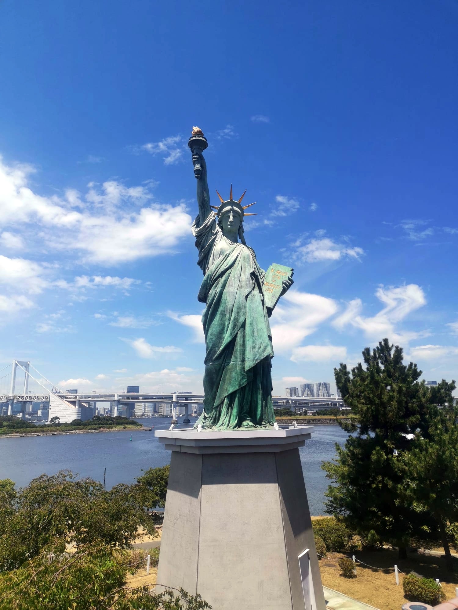 Por la mañana fuimos a conocer la isla de Odaiba. No es que haya gran cosa en esta zona de la ciudad, pero ya sólo las vistas sobre los ríos que se juntan y el perfil de la ciudad merecen la pena si pasas varios días en Tokio y tienes tiempo para ir, pues te dan una perspectiva diferente de la que disfrutas ya sólo con coger la línea de metro que te lleva allí. En Odaiba hay una réplica a pequeña escala de la Estatua de la Libertad y también una playa en la que, todo hay que decirlo, tampoco dan muchas ganas de bañarse, aunque las vistas urbanas desde ella sean bonitas. Hay también varios centros comerciales y en uno de ellos había un concierto al más puro estilo «japo-popero» de las «girls bands» que nos divirtió de lo lindo. También en esta zona está el mercado de pescado de Toyosu, en el que subastan atunes por las mañanas y hay gente que va a verlo, pero no entraba en nuestros planes visitarlo. Cerca también se encuentra el museo Mori Building Digital Art Museum, que debe de ser toda una experiencia para los sentidos y al que nos habría gustado ir, pero ya no quedaban entradas.