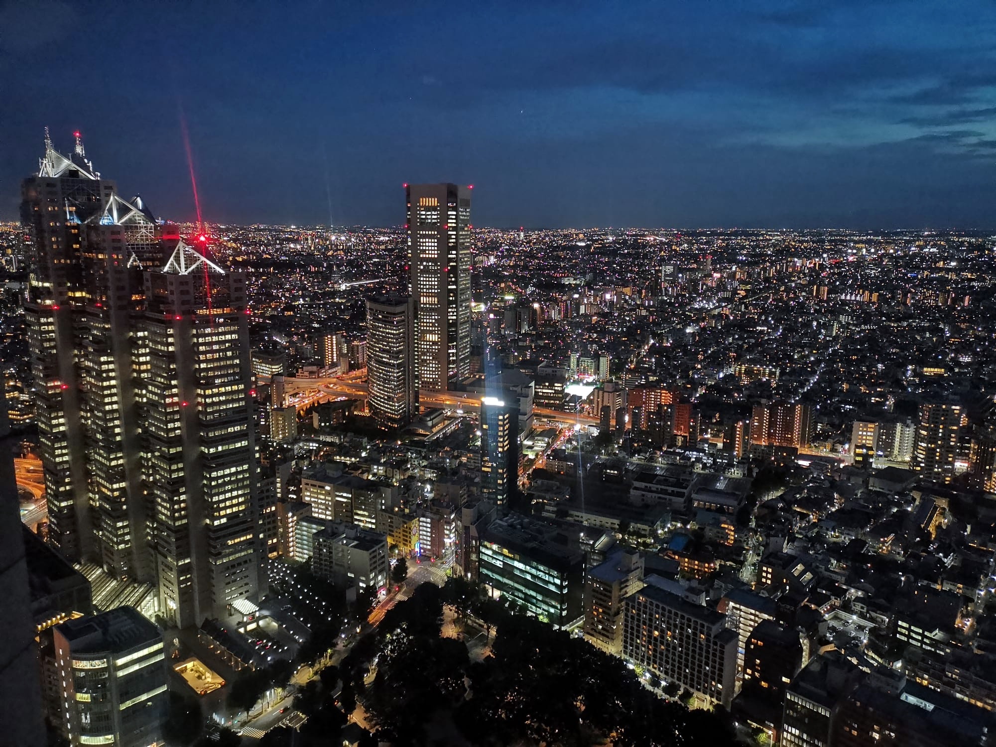 Para cerrar la jornada, nos acercamos al edificio de la Oficina Del Gobierno Metropolitano de Tokio, que tiene dos torres a las que se puede subir gratuitamente para disfrutar de las vistas de Tokio. La verdad es que las vistas nocturnas de la ciudad, con sus luces perdiéndose en el horizonte, no tienen desperdicio.