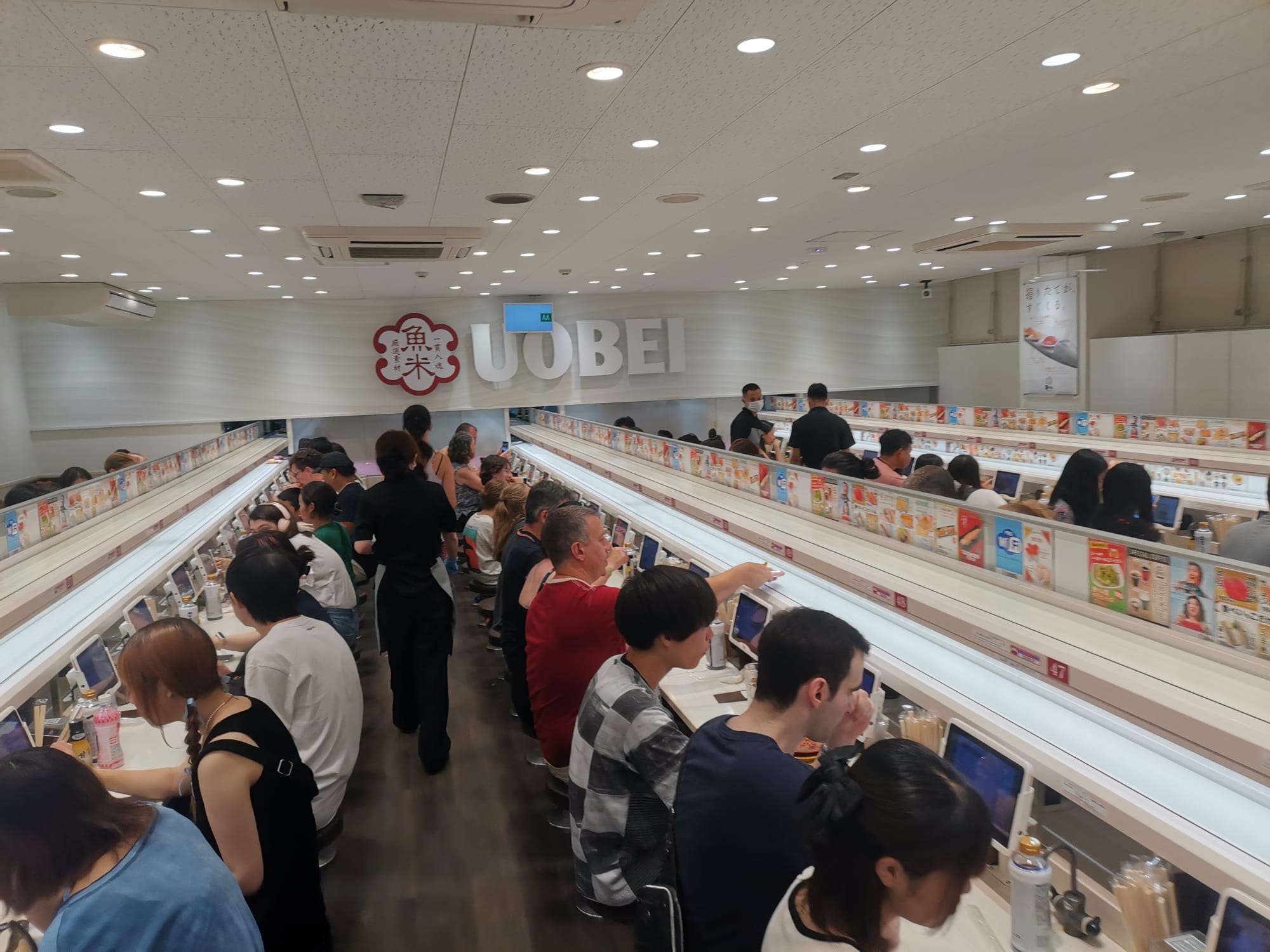 Con esto ya habíamos terminado nuestra jornada turística. Sólo quedaba cerrarla con una rica cena de sushi en el Genki Sushi, que está en una de las calles de la zona y es uno de esos restaurantes en los que pides lo que quieres en una pantalla que hay en tu sitio (no hay mesas, sino barras) y tu pedido viene hacia ti por una cinta transportadora. Sobre todo, hay sushi, pero puedes cenar otros platos como soba, ramen, etc. Es un sitio económico, divertido y, además, se puede pagar con tarjeta. ¡Recomendable probarlo!