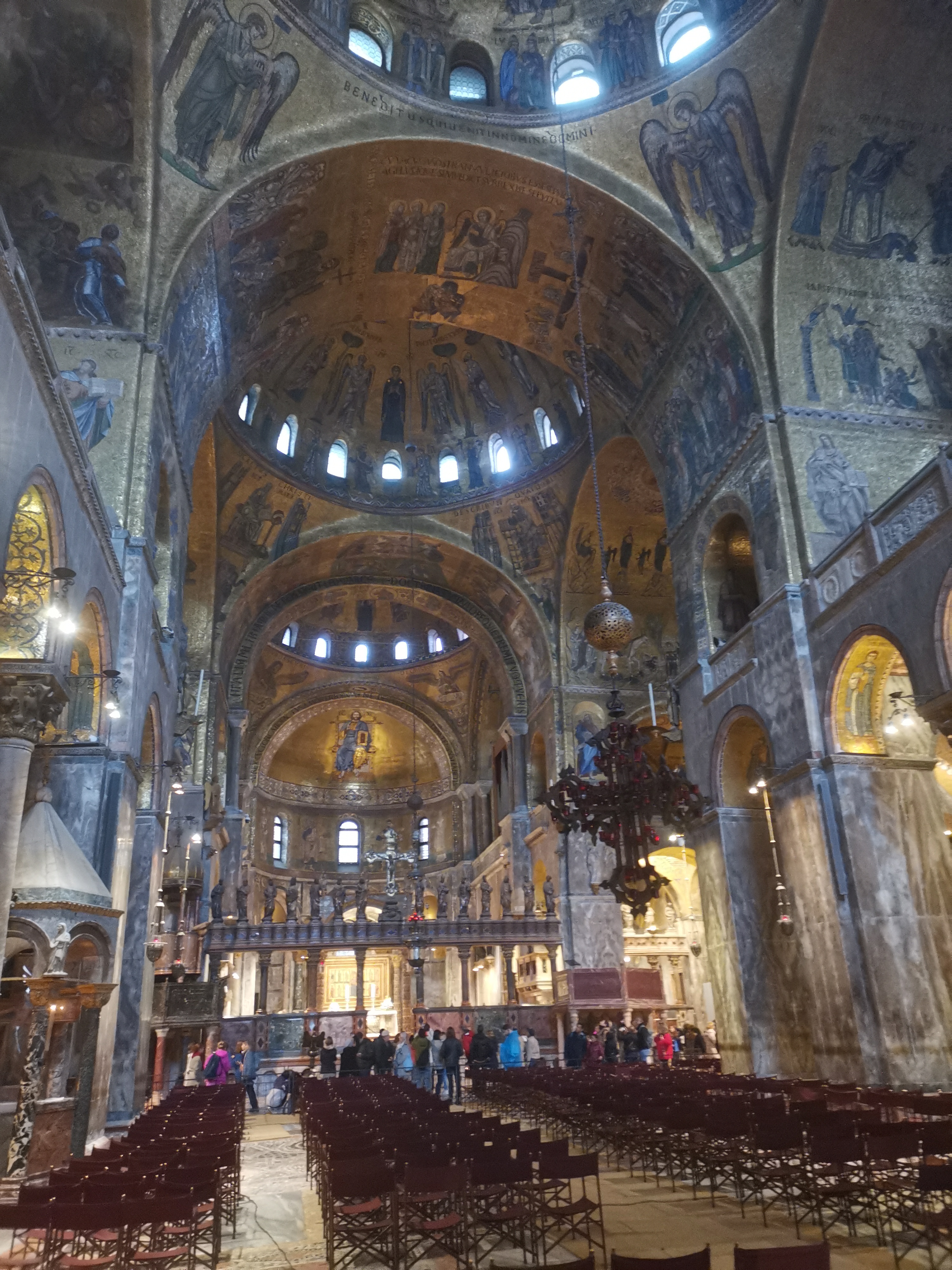 La Basílica de San Marcos, por dentro, nos recordó mucho a la mezquita de Santa Sofía, en Estambul. Ambas están decoradas por doquier con mosaicos de pan de oro, regalando al ojo ese brillo y esos colores que las hacen tan especiales. Y es que la Basílica de San Marcos pasó por muchos estilos arquitectónicos, de modo que el bizantino que la une con Santa Sofía está muy presente en cada rincón y en cada cúpula.