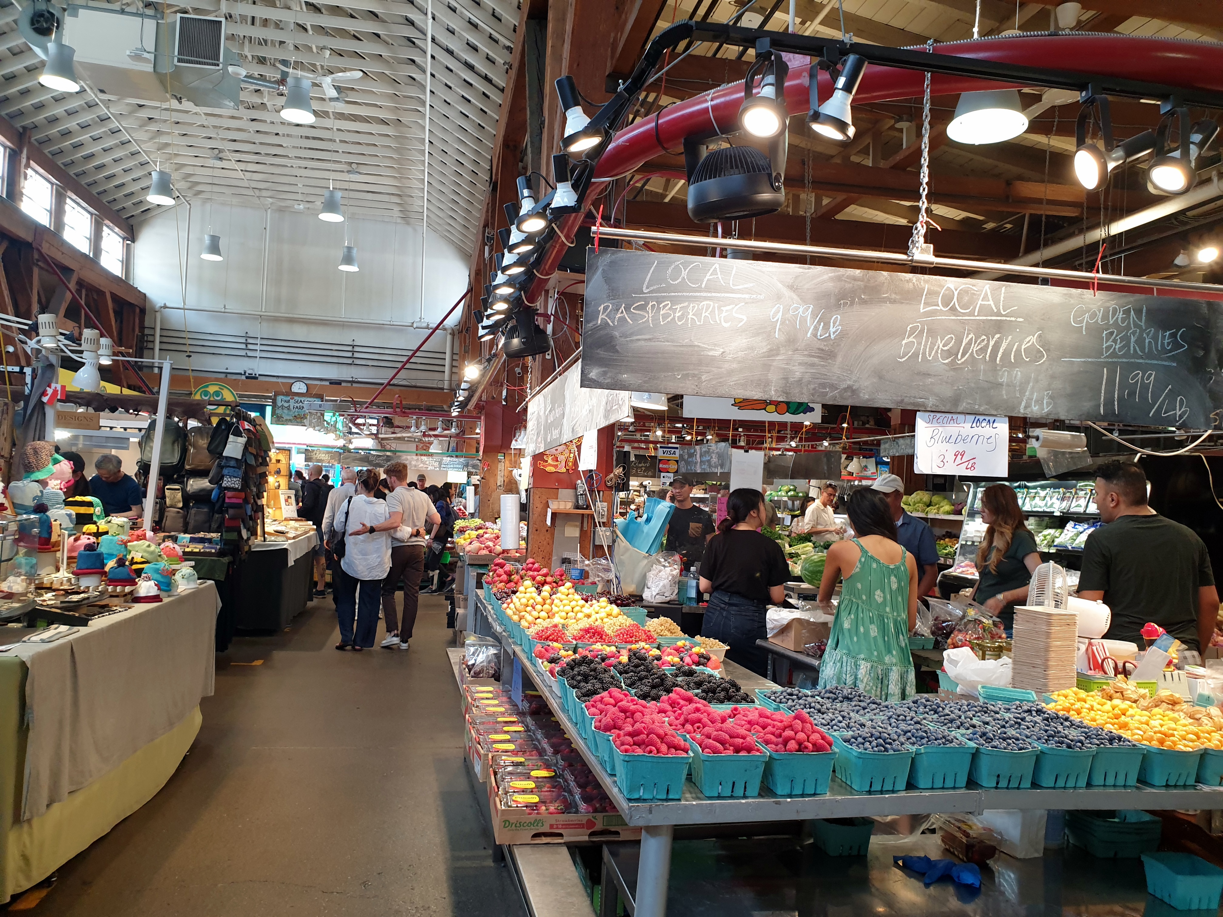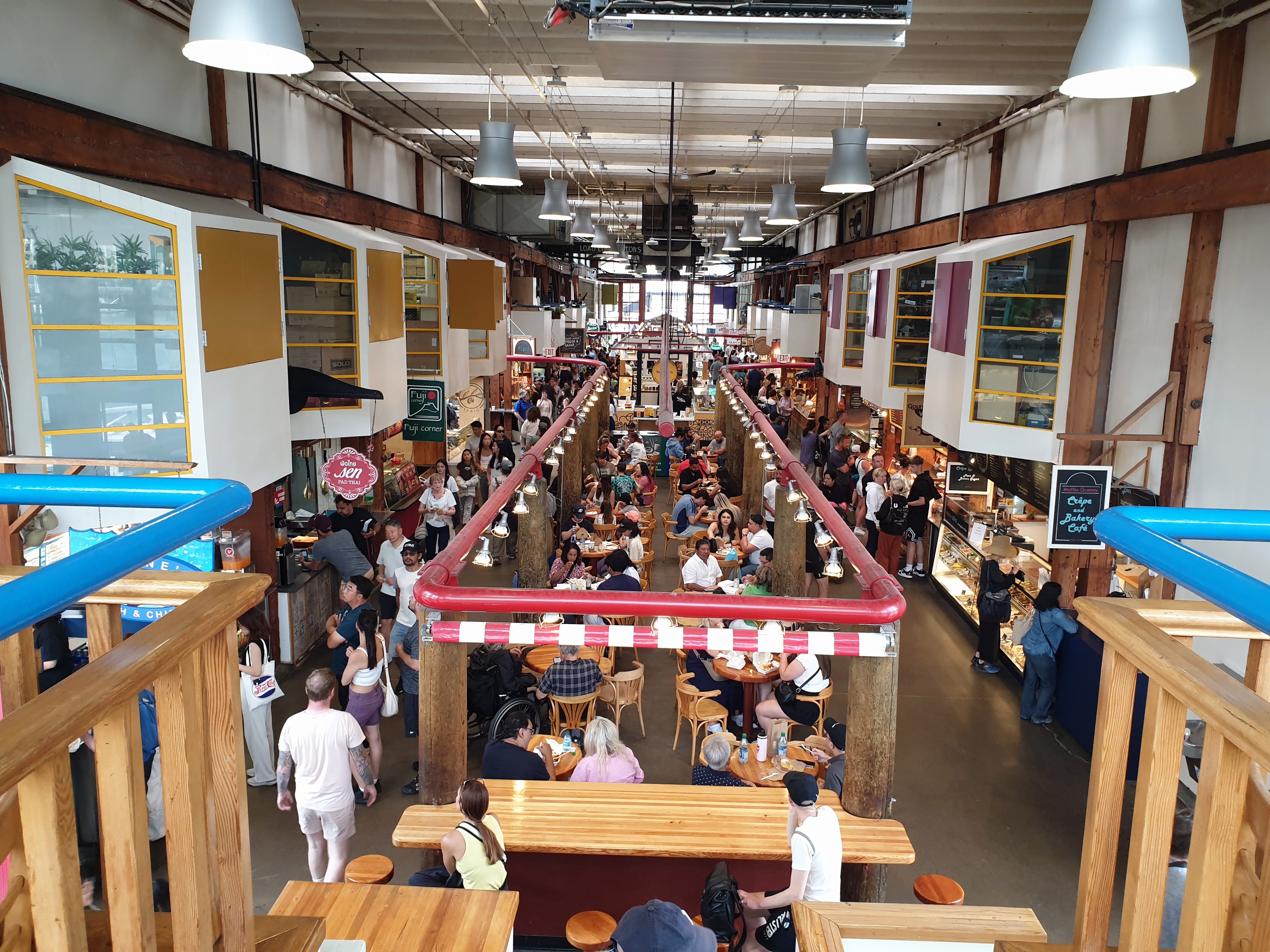 La excursión acababa en el puerto del barrio de Grandville, así que nos quedamos a comer en su mercado, famoso por ser un buen lugar para comer comprando algo en sus puestos de comida para llevar. Grandville son varias calles llenas de color, de música callejera, de tiendas de artesanía y de recuerdos y de gente comprando o comiendo, tanto en las mesas del exterior como en las que hay dentro del mercado. En el mercado se pueden comprar frutas, verduras, carne, pescado… pero también dulces, muchos dulces. Así que pasamos por allí el mediodía y parte de la tarde comiendo, comprando y disfrutando tranquilos del trajín del mercado y del puerto.