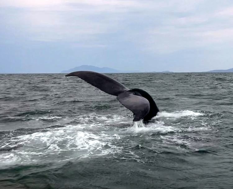 Si te apetece vivir la experiencia de ver ballenas en estado salvaje, nosotros sin duda te recomendamos que reserves algún tour de avistamiento de ballenas, orcas o lo que quiera surgir en tu camino. Son experiencias caras, pero muy bonitas. Hay distintas opciones de embarcación. Nosotros escogimos la zodiac con la empresa Wild Wales. La excursión duró unas 4 horas y nos costó 135 € por cabeza. Nuestra guía y capitana, Ashley, fue encantadora y nos contó cosas interesantes sobre los cetáceos que avistamos: las ballenas jorobadas.