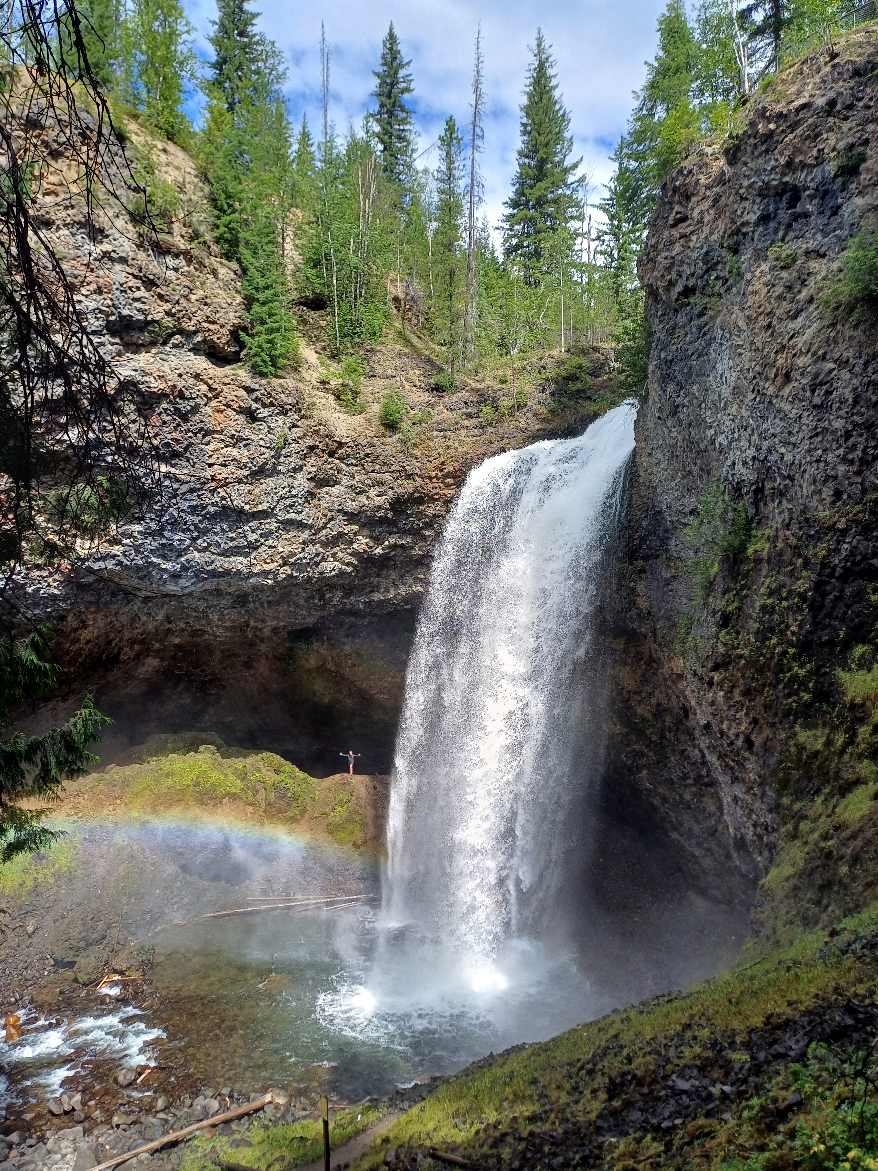 La cascada de Spahats es muy similar a la de Helmcken, con uno de esos saltos de cola de caballo que surgen de un circo de roca que se convierte en un cañón que deja ver las distintas capas de roca volcánica. Pero la altura y el caudal son mucho menores que los de Helmcken Falls y no resulta tan impresionante. Aunque es una preciosidad de la naturaleza igualmente.