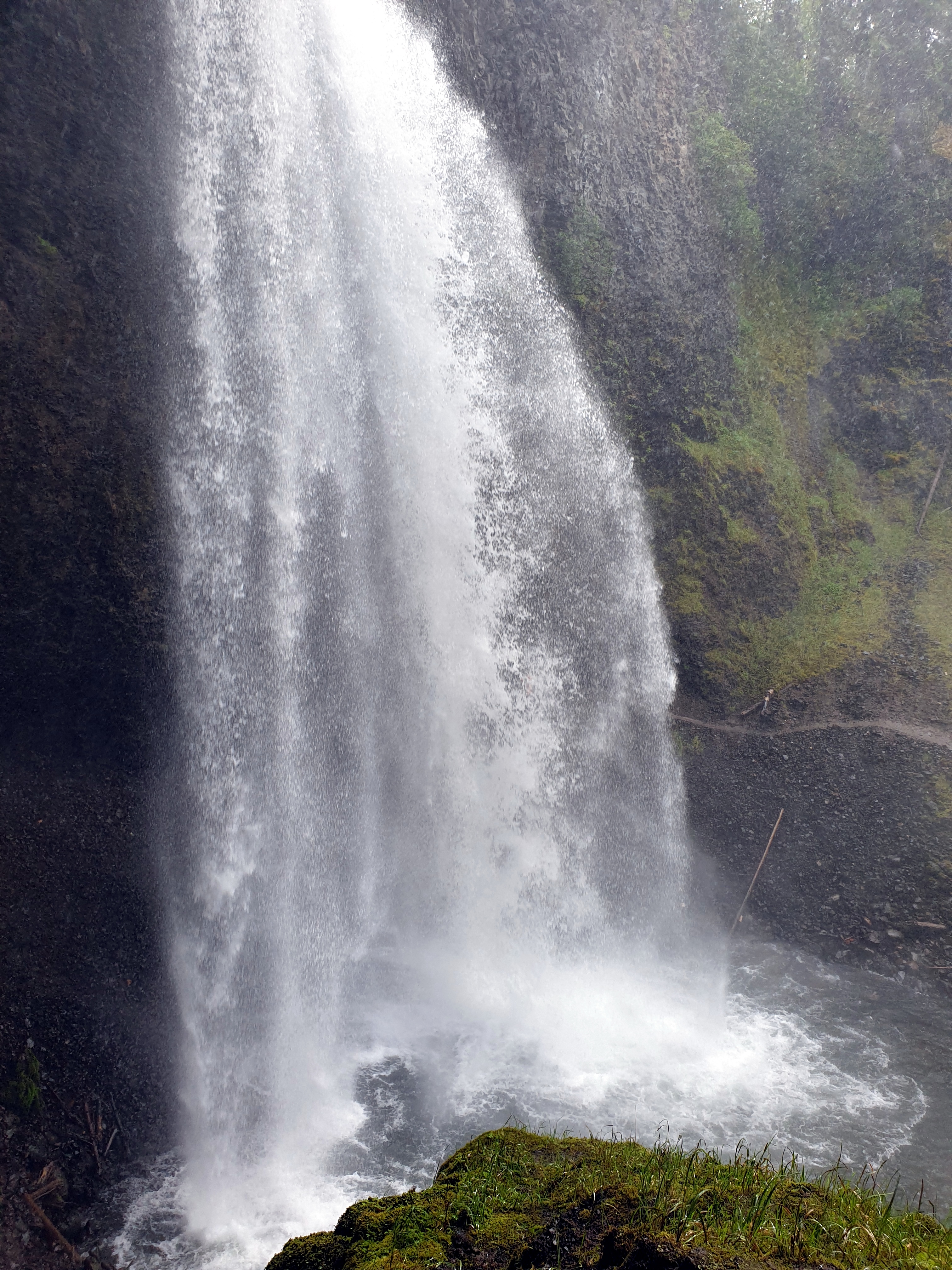 Para llegar a la cascada de Moul Falls hay que recorrer un sendero por el bosque. El paseo es cómodo y muy bonito (como todos hasta ahora, la verdad) e ida y vuelta (5 kms y medio) nos llevó una hora y cuarto. La cascada no es muy impresionante, pero lo divertido es que puedes pasar por detrás de ella para aparecer en la otra orilla. ¡Te empapas, eso sí!