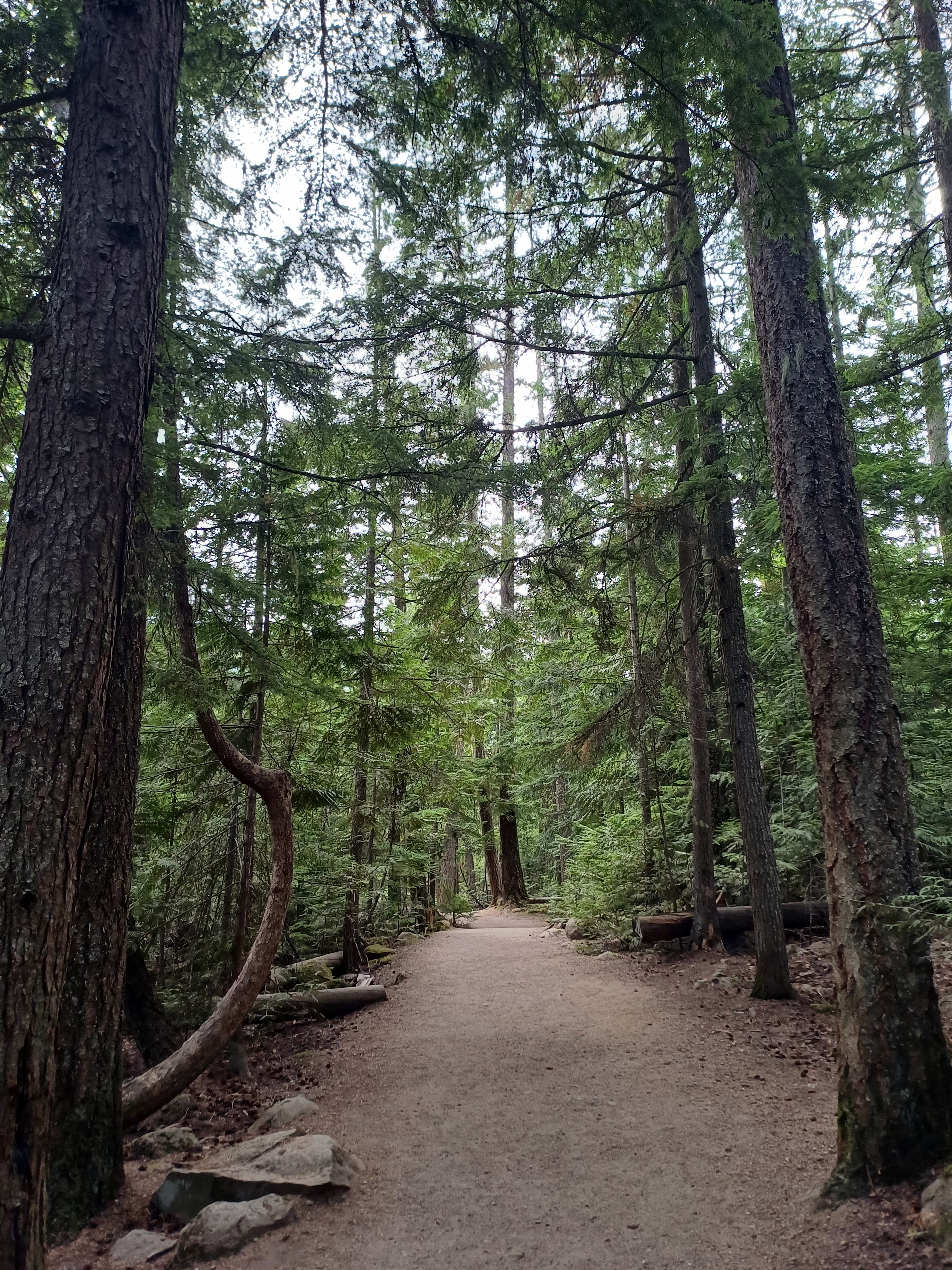 Pasamos la mañana en la carretera hasta llegar al camping de Wells Gray en el que habíamos reservado para pasar la noche. ¡Nuestro primer camping con la caravana! Un camping muy precario, en realidad, pero con los servicios mínimos. La chica de recepción nos recomendó algunas excursiones que hacer por los alrededores y por la tarde decidimos hacer una de ellas, que era una pequeña ruta por el bosque junto a un inmenso río flanqueado por los árboles, como sacado de una película.