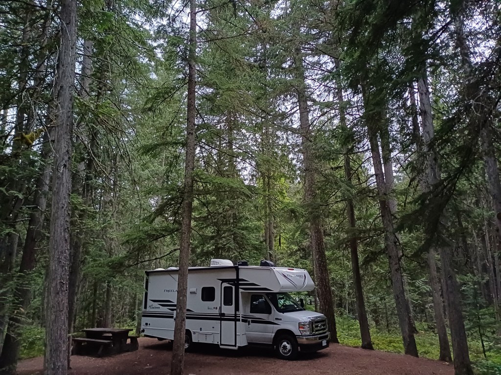 Hicimos noche un poco más adelante en el camino en un espacio para acampar (que no camping) llamado Yard Creek Campground y nos encantó. No tiene los servicios de un camping, pero sí espacios para acampar en medio de un bosque oscuro de tan frondoso que es. Realmente era estar en medio del bosque. Cuesta 25 dólares (menos de lo que valen los campings) y, por 2 dólares más, se pueden vaciar las aguas de la caravana.