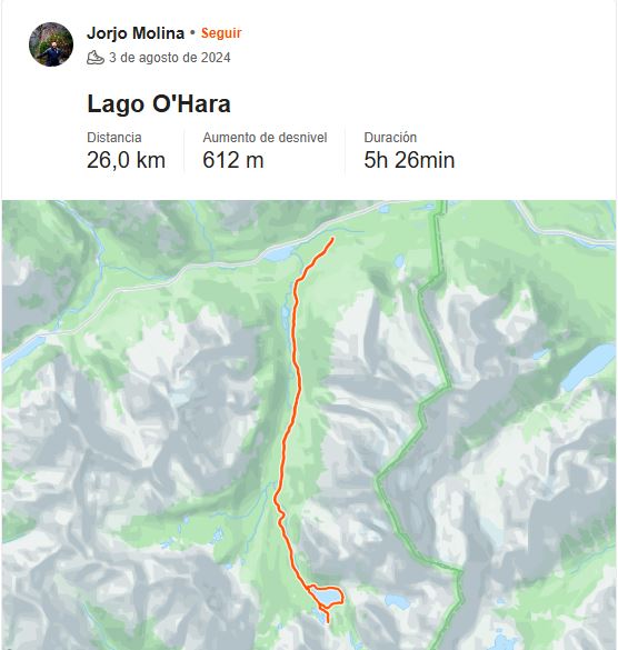 El último día que pasamos en Yoho hicimos la excursión más larga del viaje: subir al lago O’Hara. Para llegar a este precioso lago seguramente tengas que subir andando por la pista (11 kms de ida y lo mismo de vuelta), porque solo hay 3 autobuses al día que te suben desde el parking y para conseguir billete tienes que solicitarlo meses antes y se otorgan por sorteo. Después, para la bajada, puedes intentar cogerlo si quedan sitios libres, nos explicó una de las trabajadoras del parque.